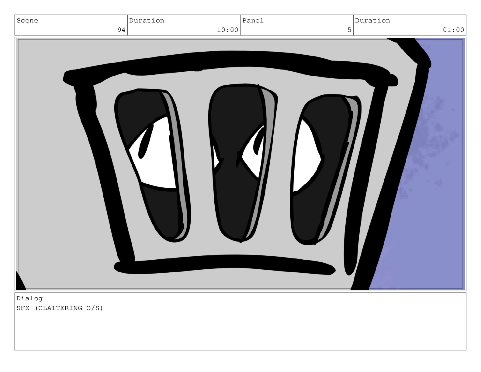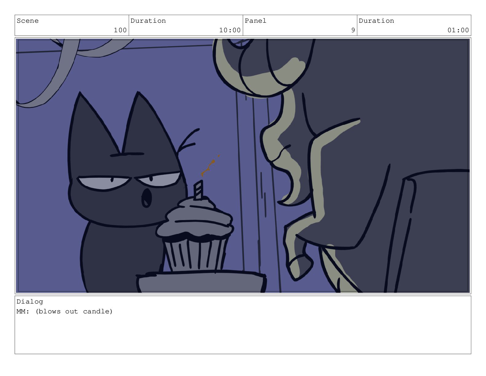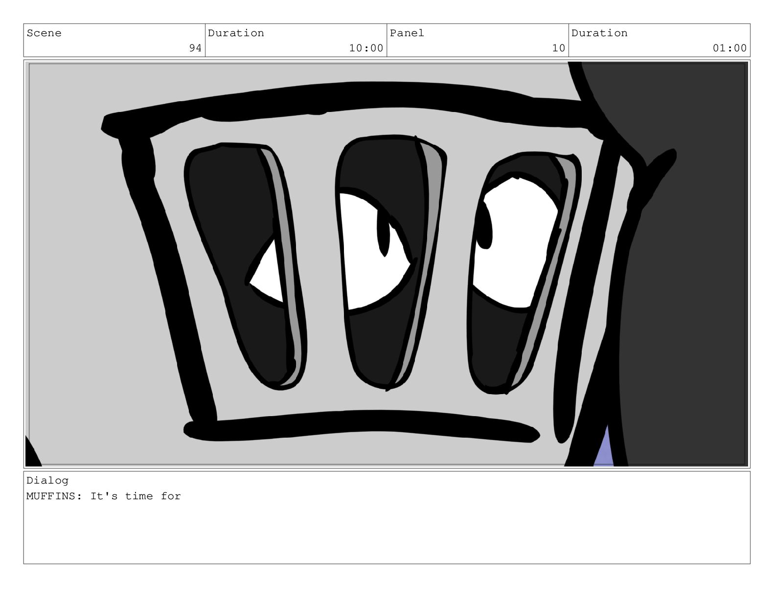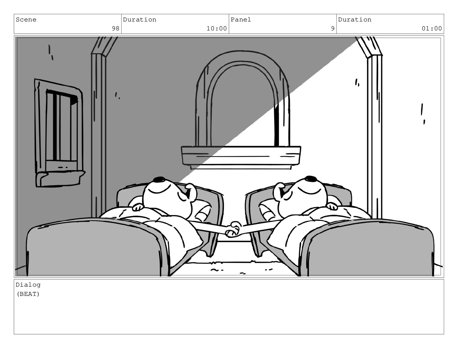 Scene 98 Duration 10:00 Panel 9 Duration 01:00 Dialog (BEAT)
