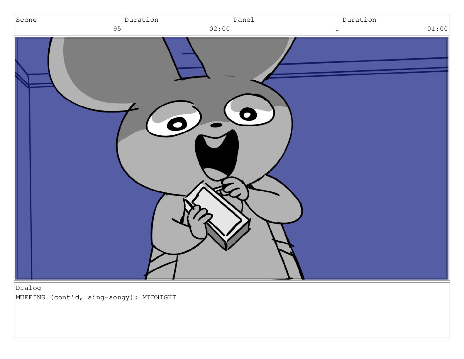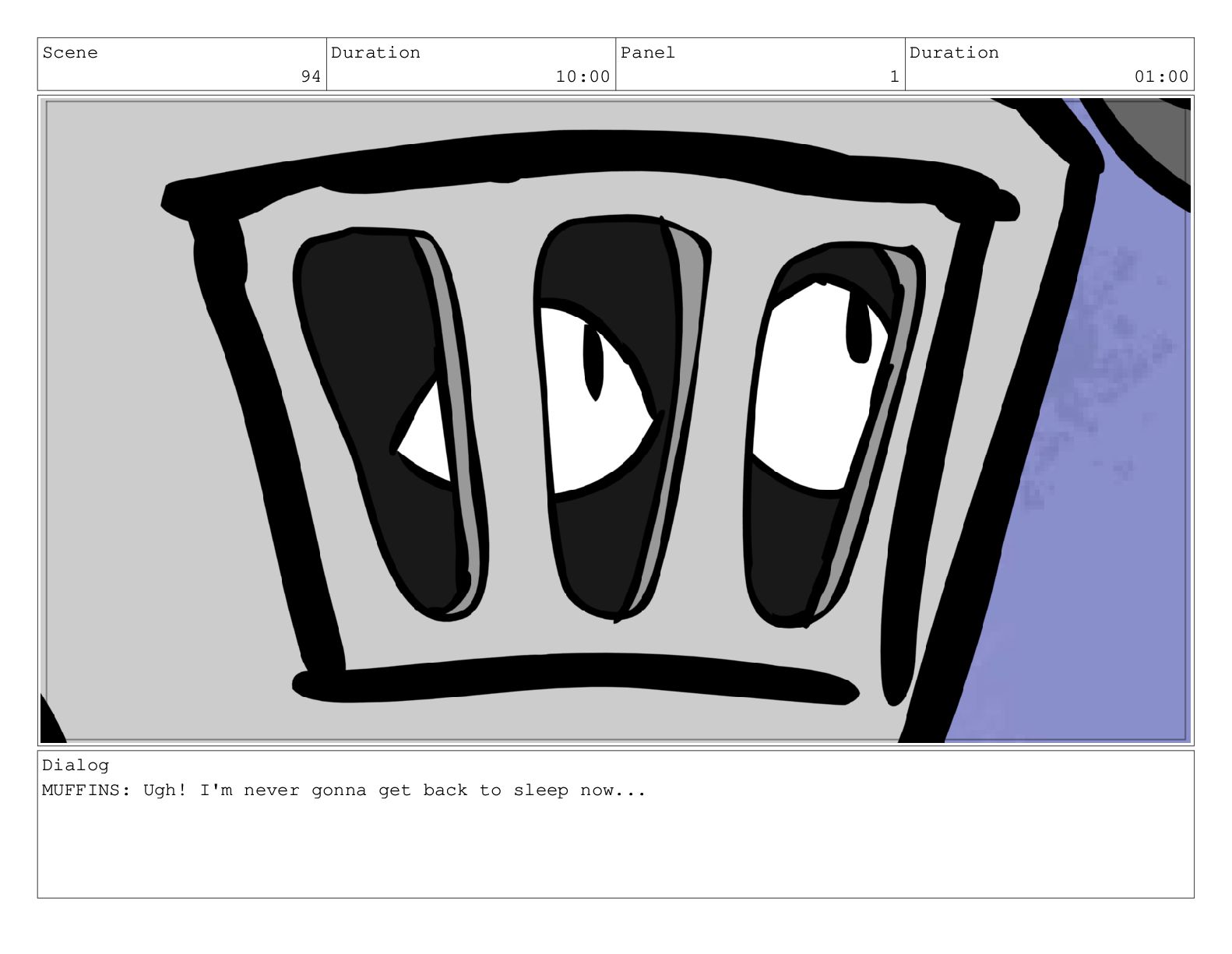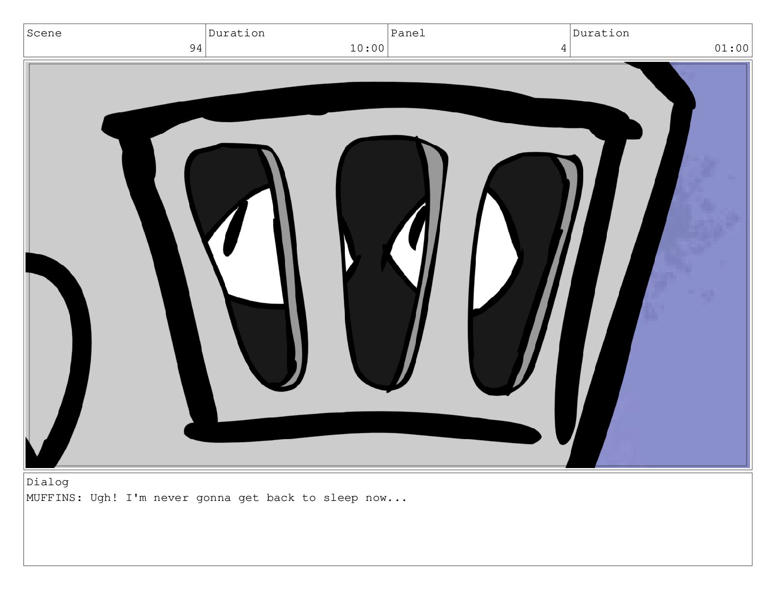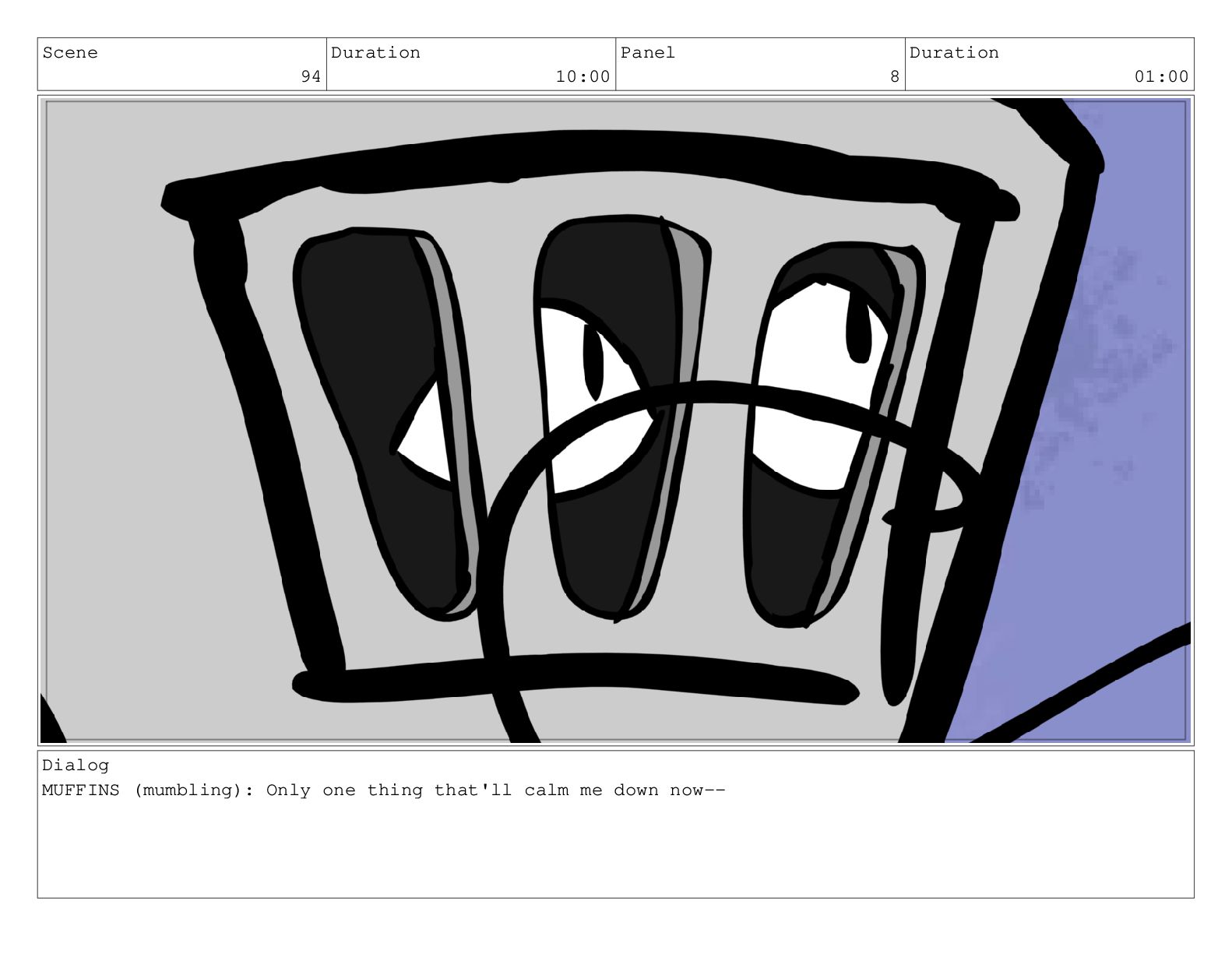 Scene 98 Duration 10:00 Panel 9 Duration 01:00 Dialog (BEAT)