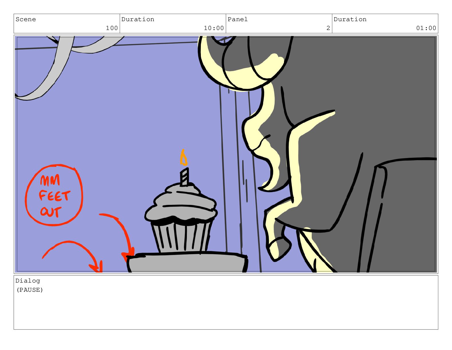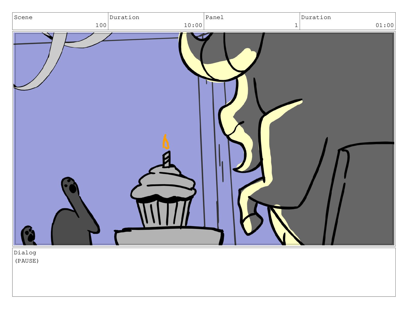 Scene 100 Duration 10:00 Panel 2 Duration 01:00 Dialog (PAUSE)