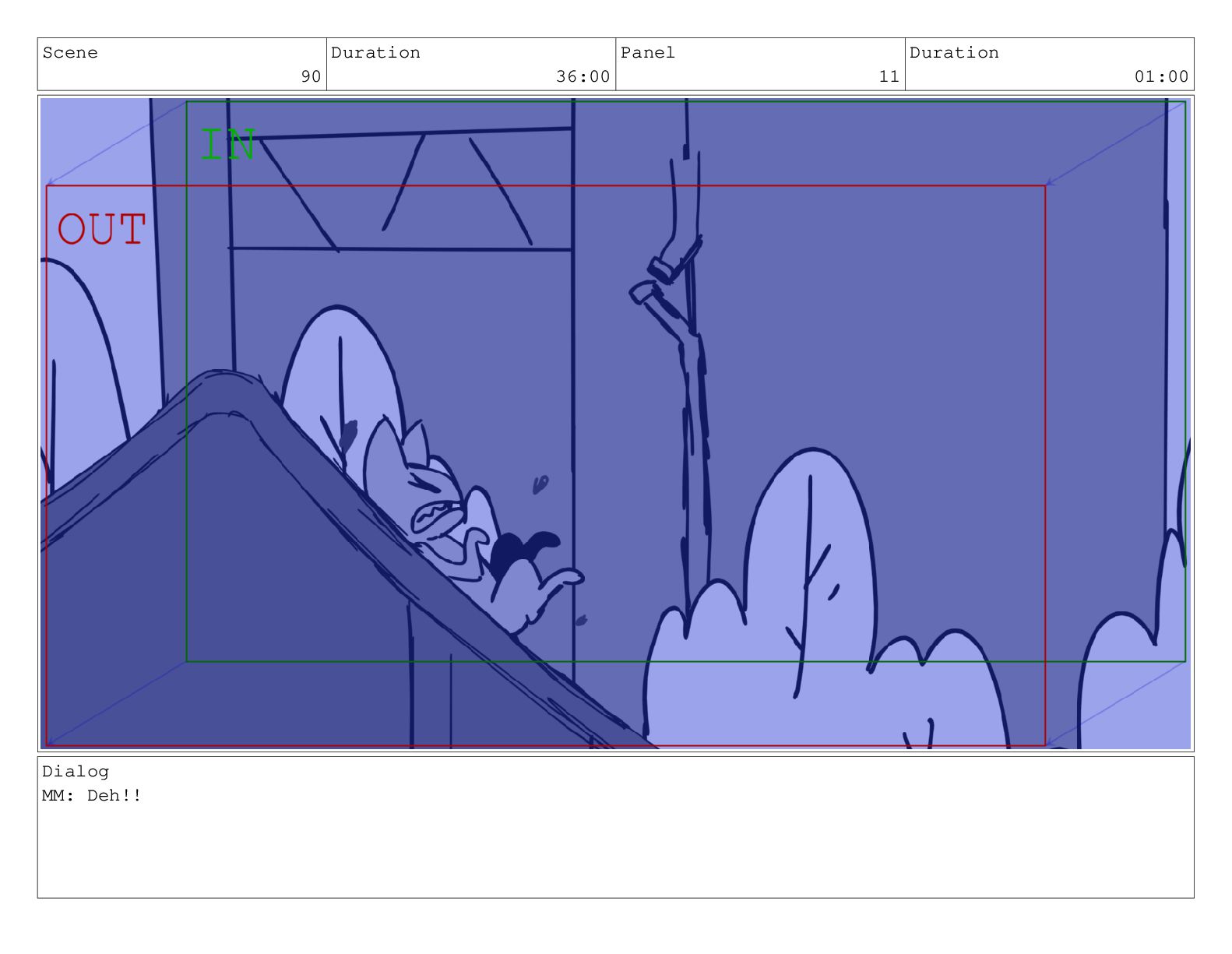 Scene 90 Duration 36:00 Panel 11 Duration 01:00 Dialog MM: