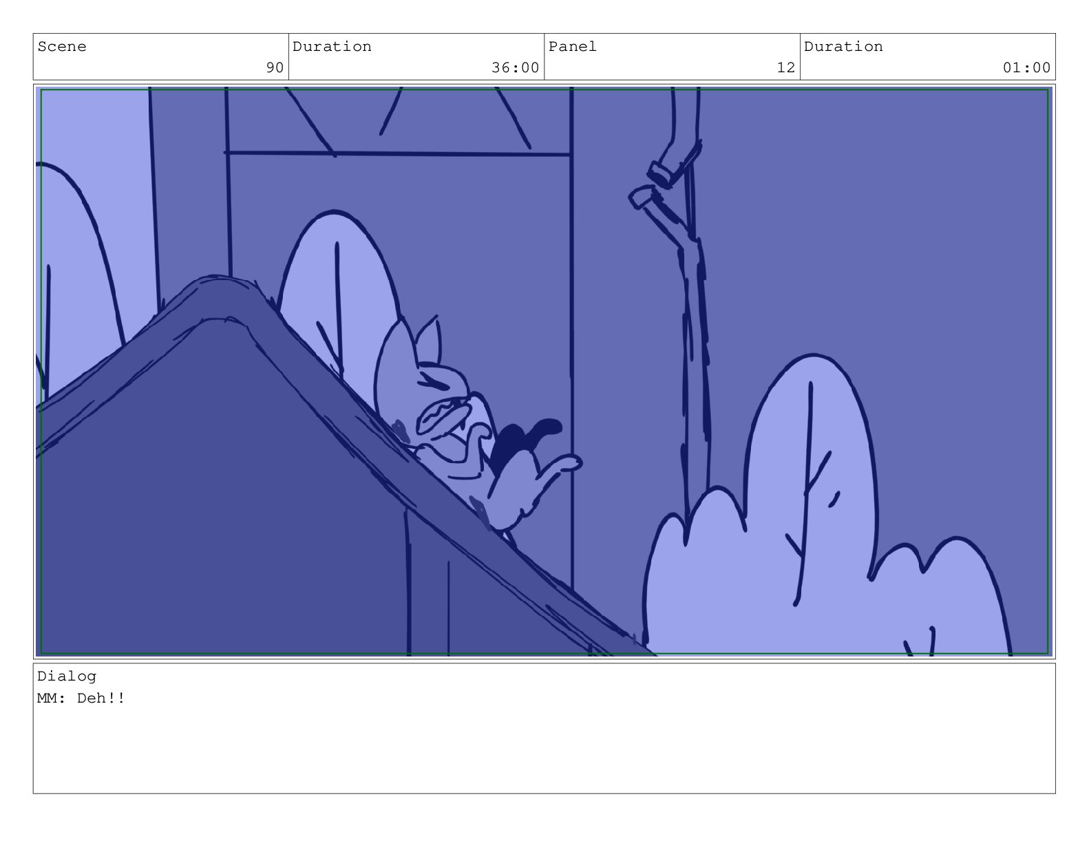Scene 90 Duration 36:00 Panel 12 Duration 01:00 Dialog MM: