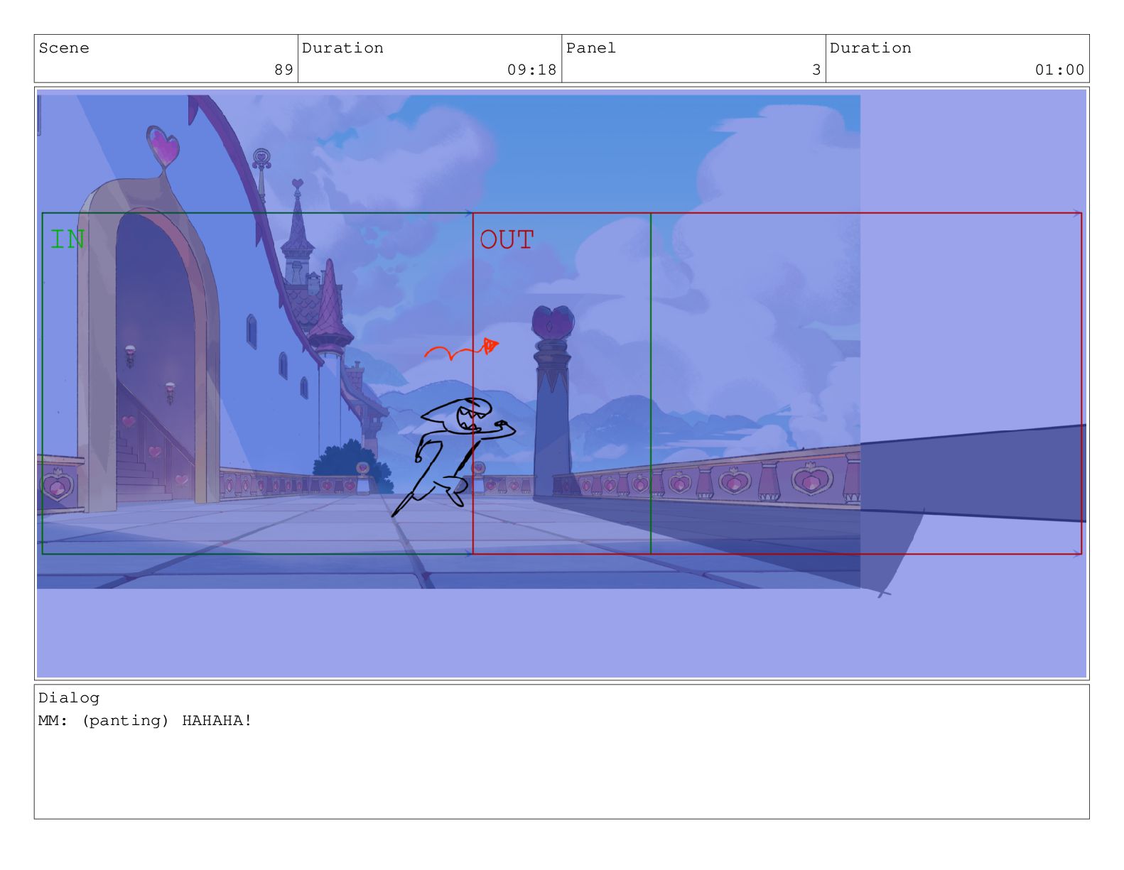 Scene 89 Duration 09:18 Panel 3 Duration 01:00 Dialog MM: