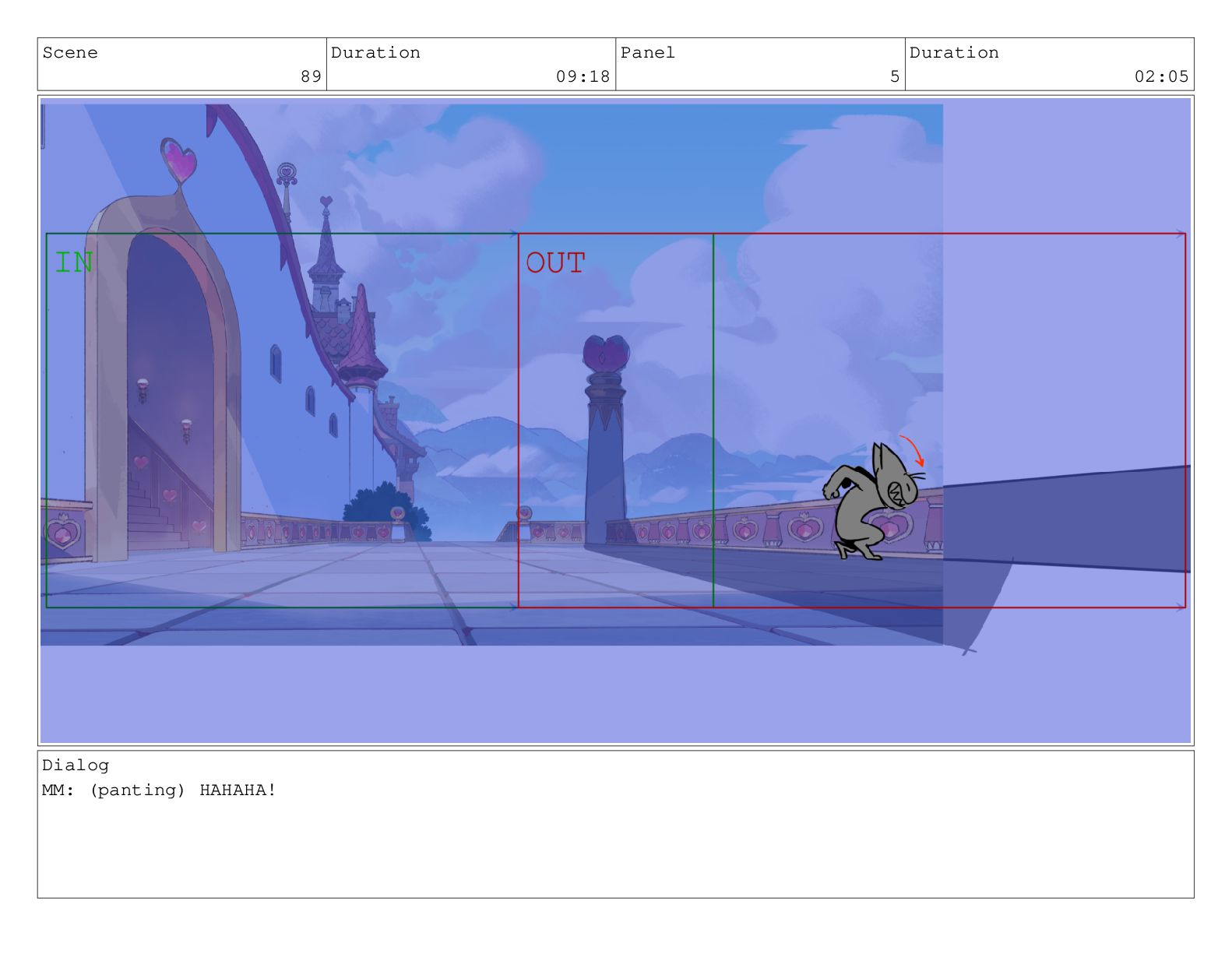 Scene 89 Duration 09:18 Panel 5 Duration 02:05 Dialog MM: