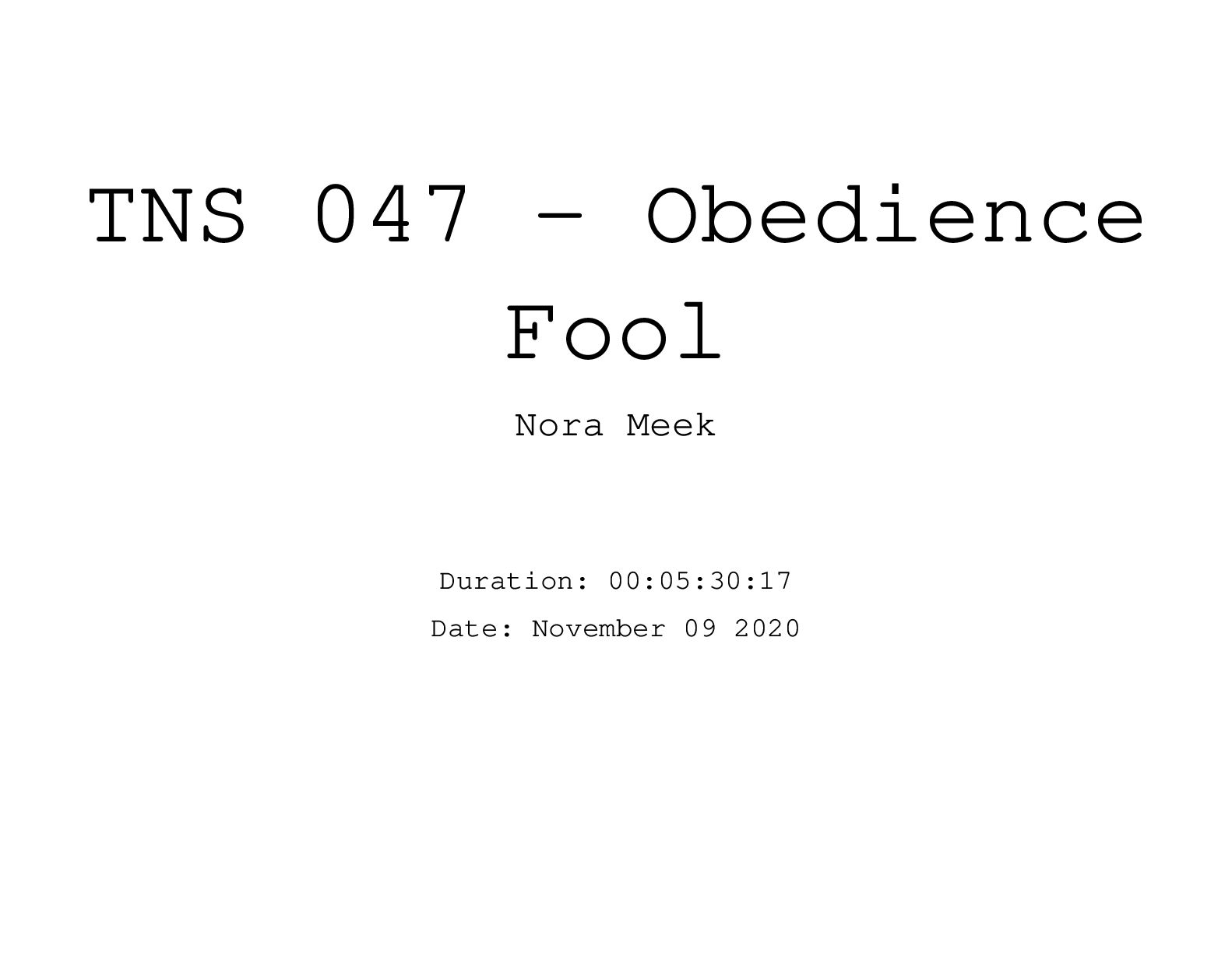 TNS 047 - Obedience Fool Nora Meek Duration: 00:05:30:17 Date: