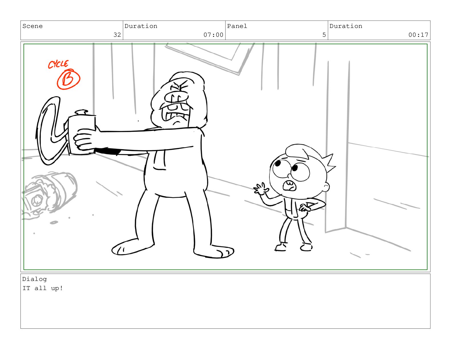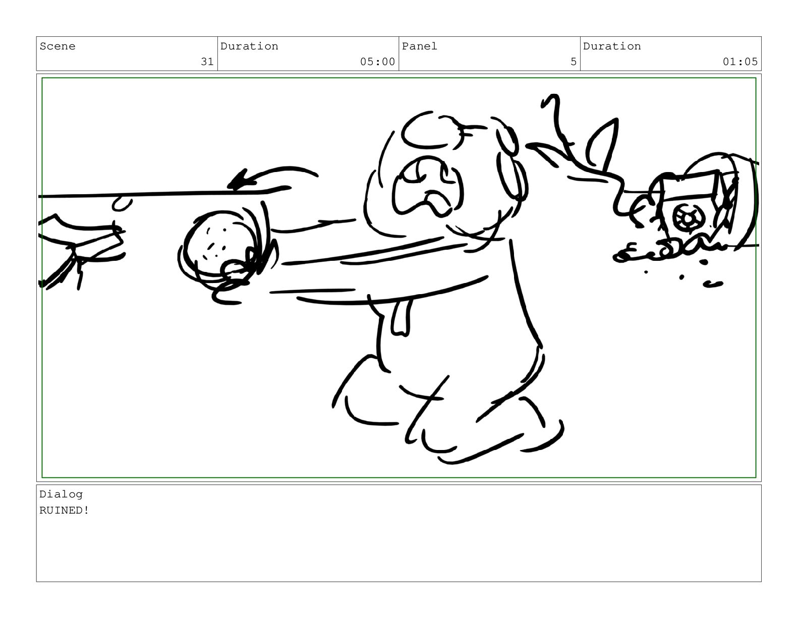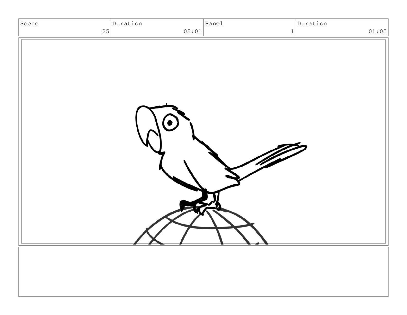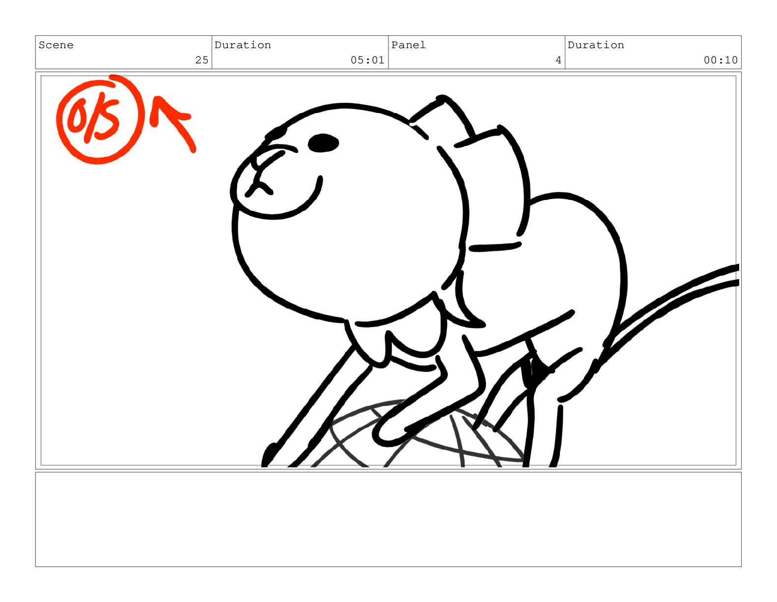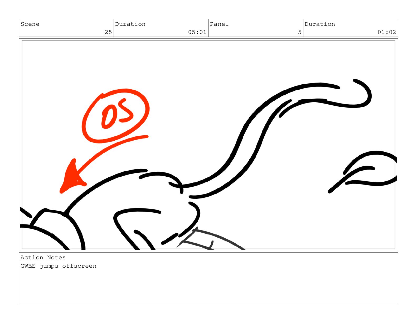 Scene 25 Duration 05:01 Panel 5 Duration 01:02 Action Notes
