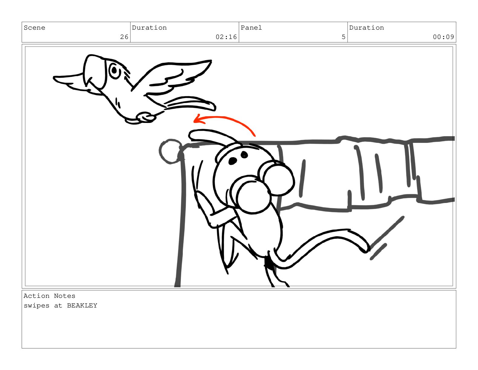 Scene 26 Duration 02:16 Panel 5 Duration 00:09 Action Notes