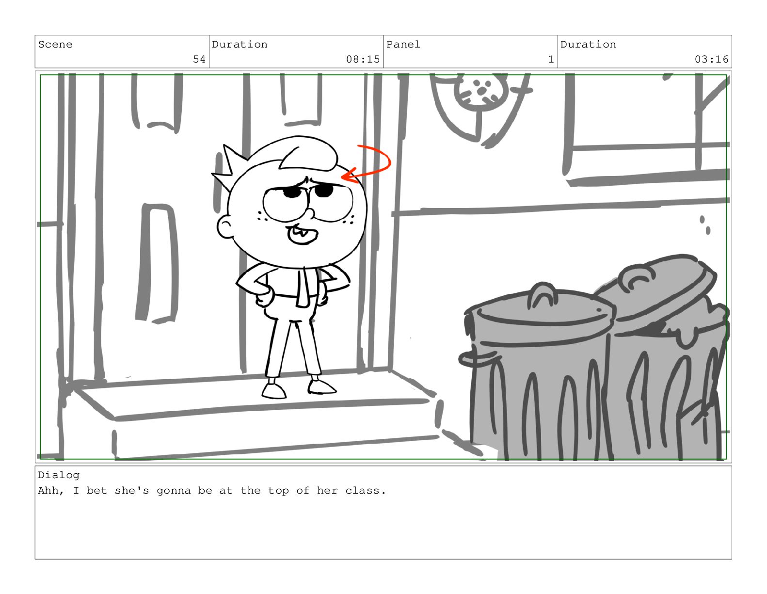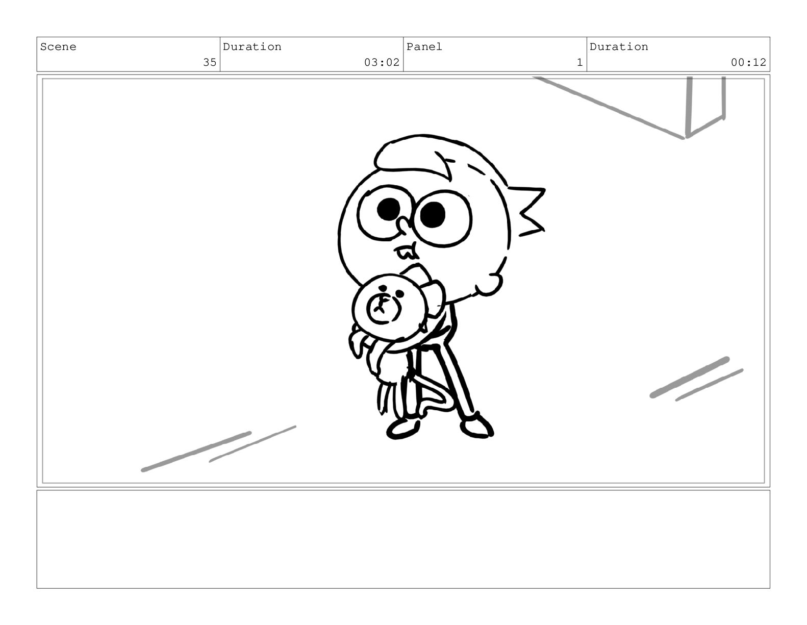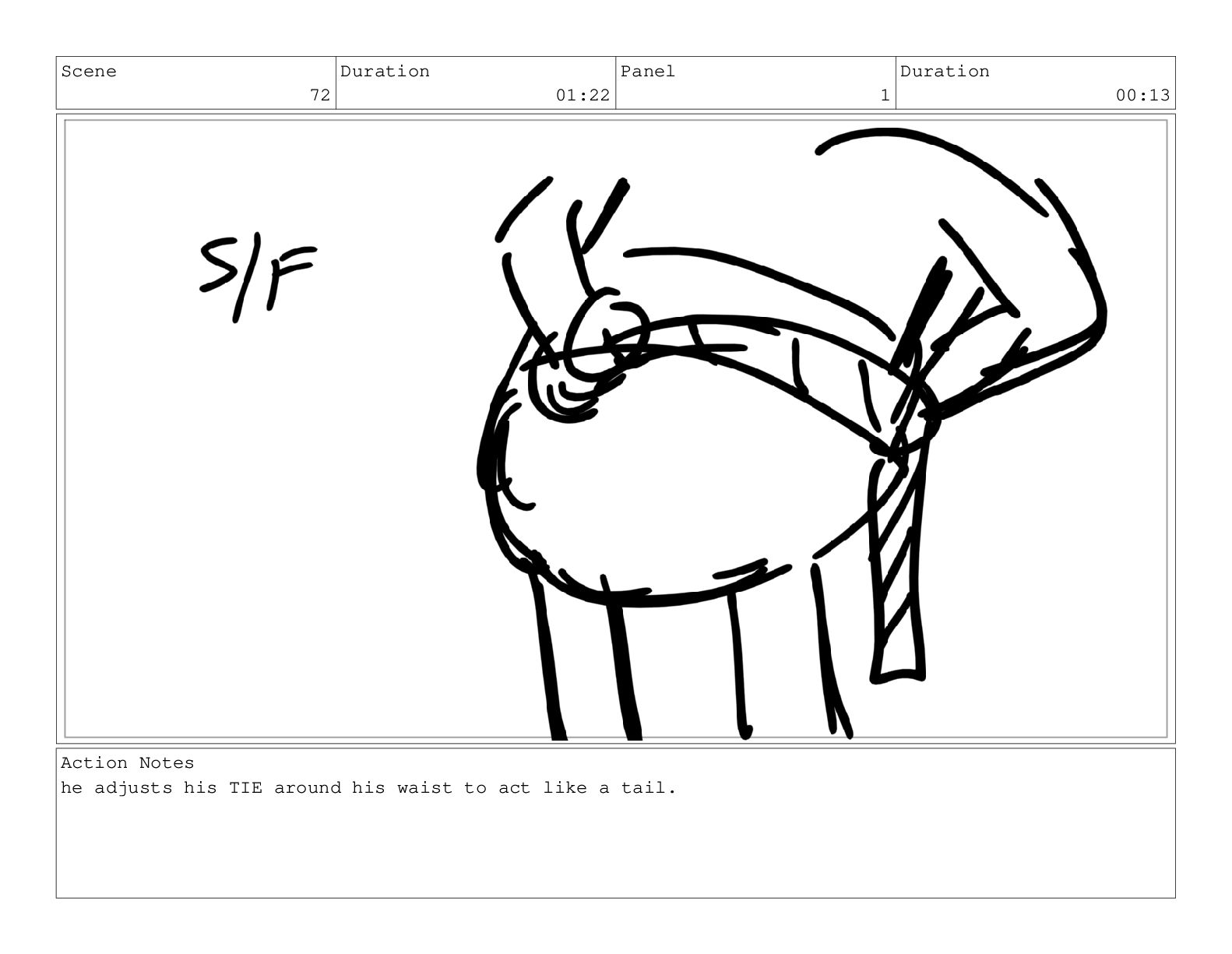 Scene 72 Duration 01:22 Panel 1 Duration 00:13 Action Notes