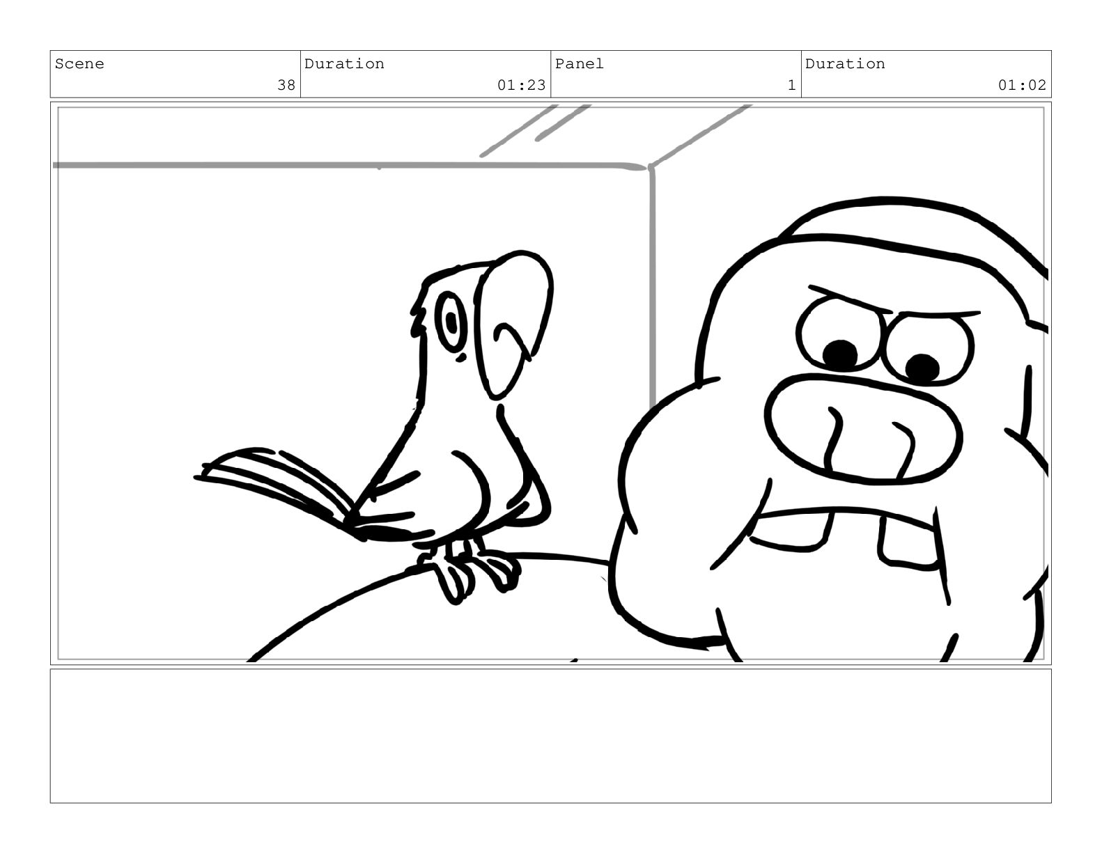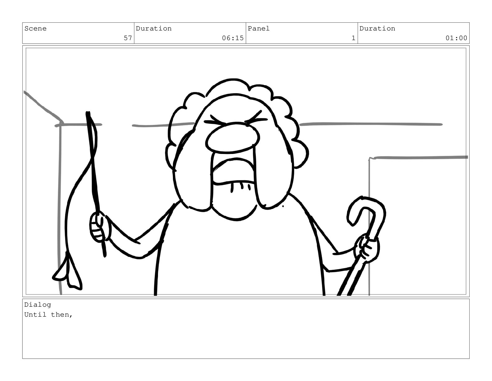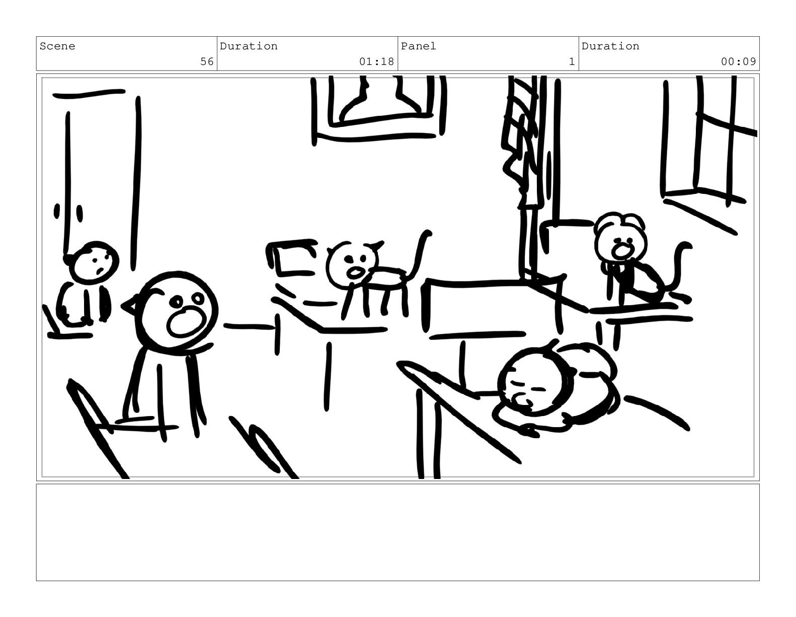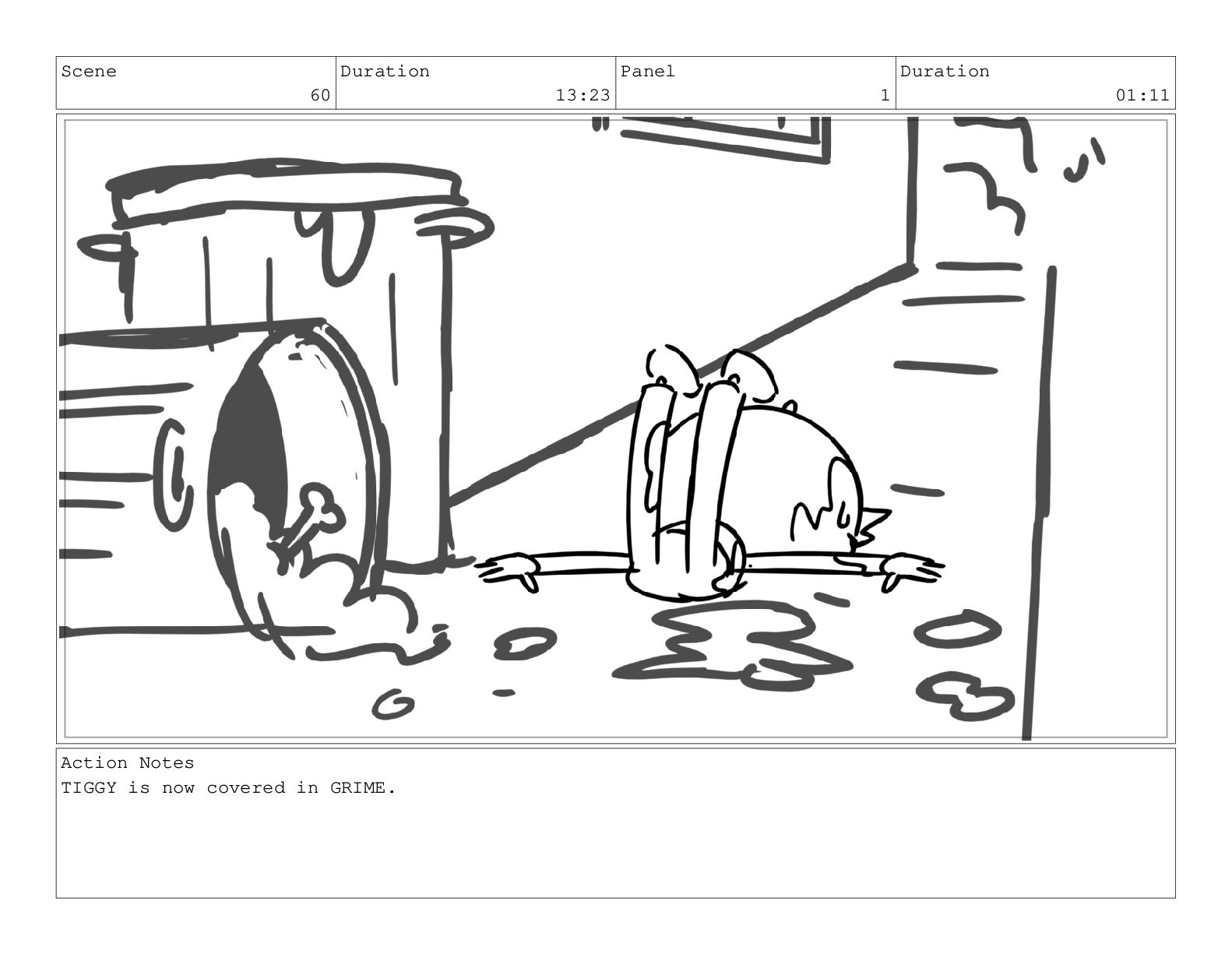 Scene 60 Duration 13:23 Panel 1 Duration 01:11 Action Notes
