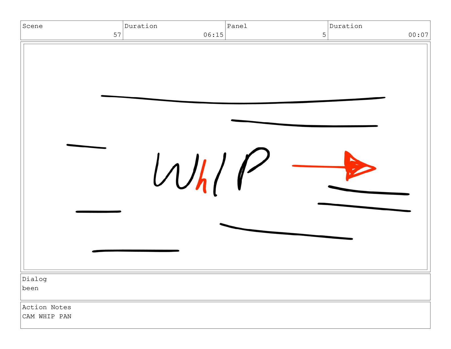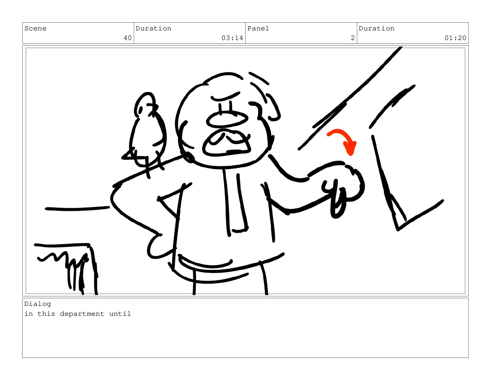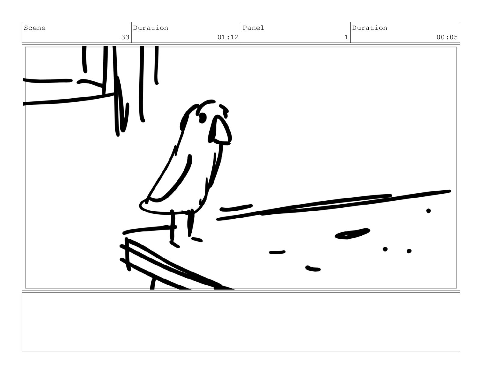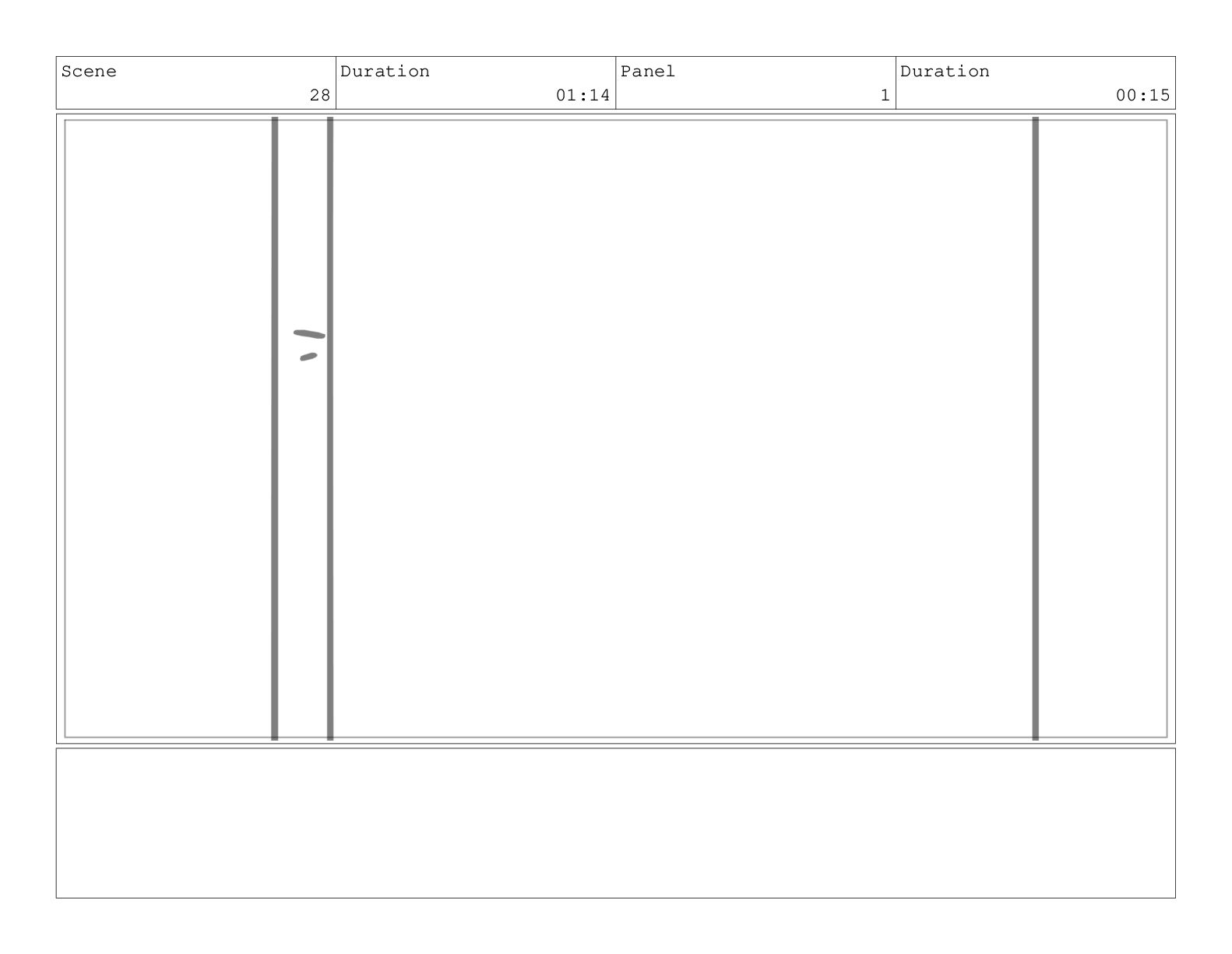 Scene 60 Duration 13:23 Panel 1 Duration 01:11 Action Notes