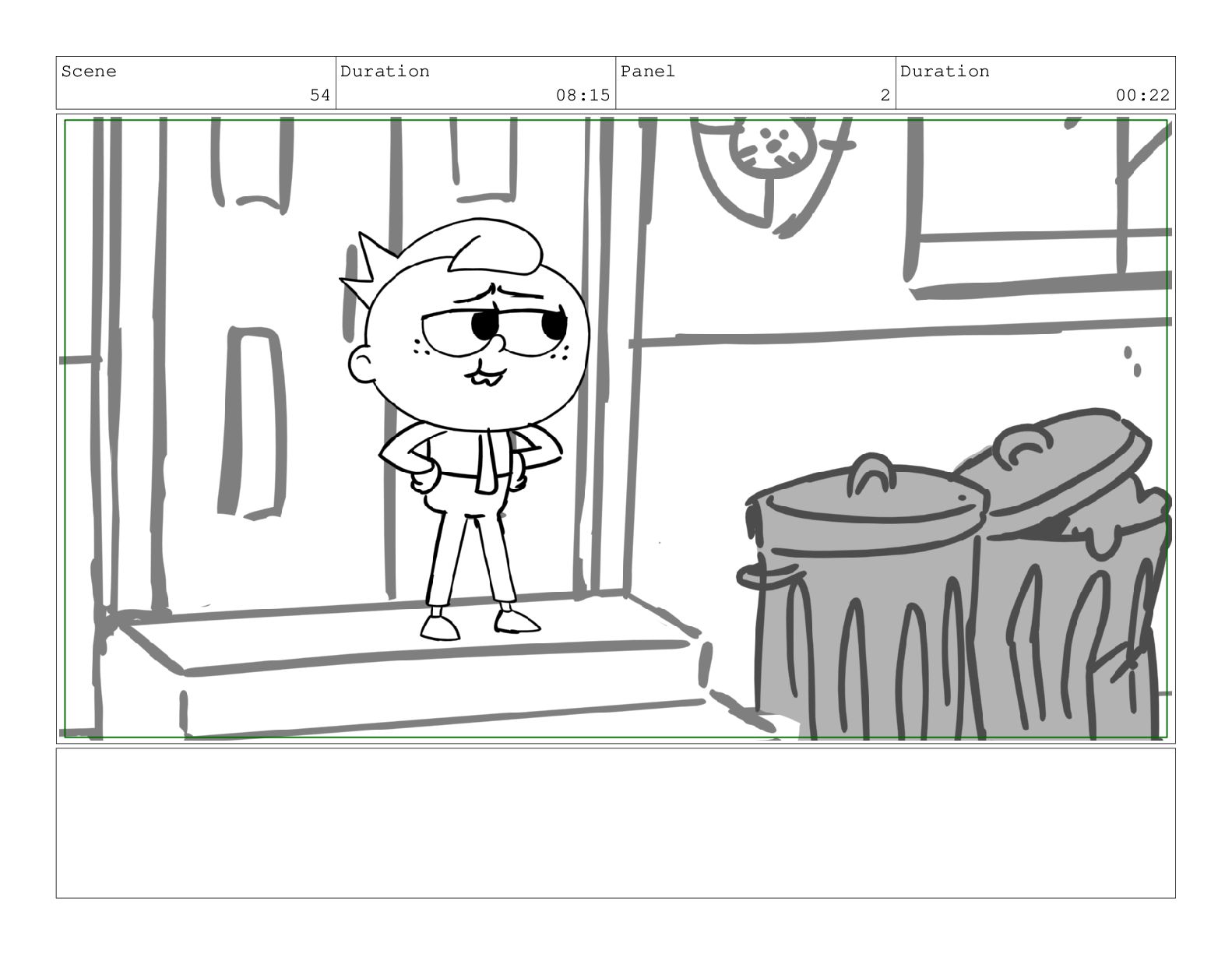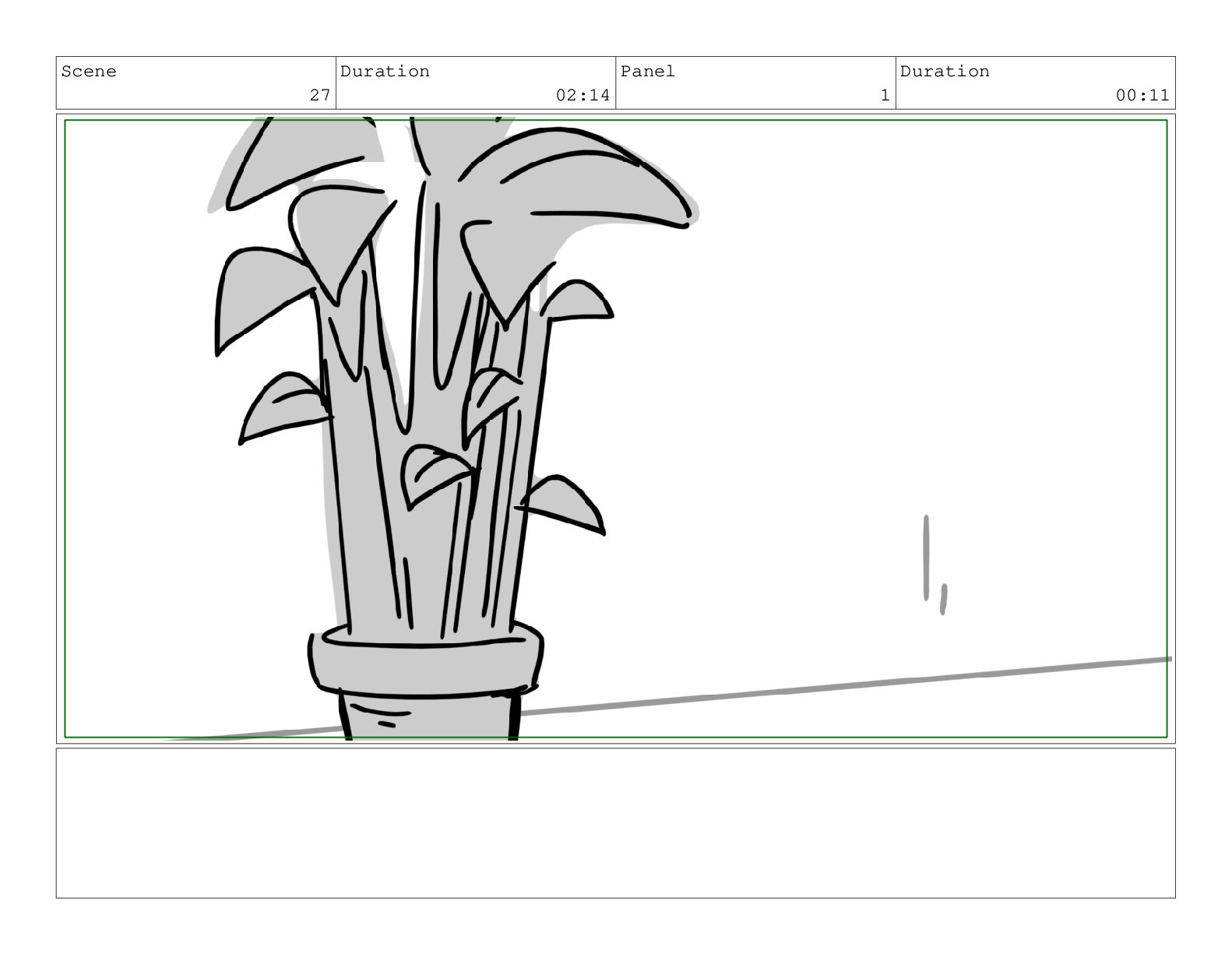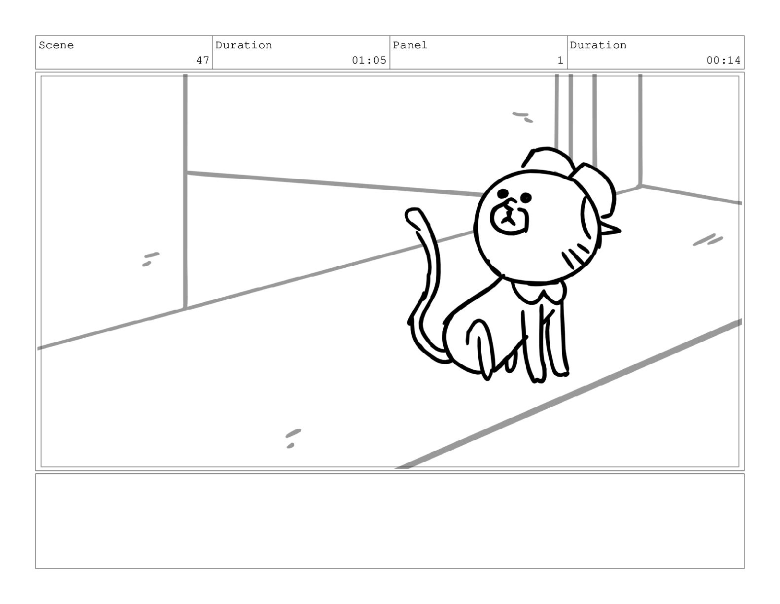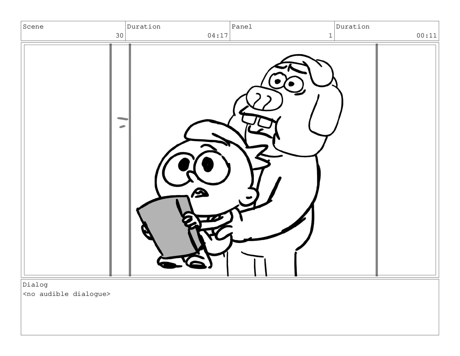 Scene 60 Duration 13:23 Panel 1 Duration 01:11 Action Notes