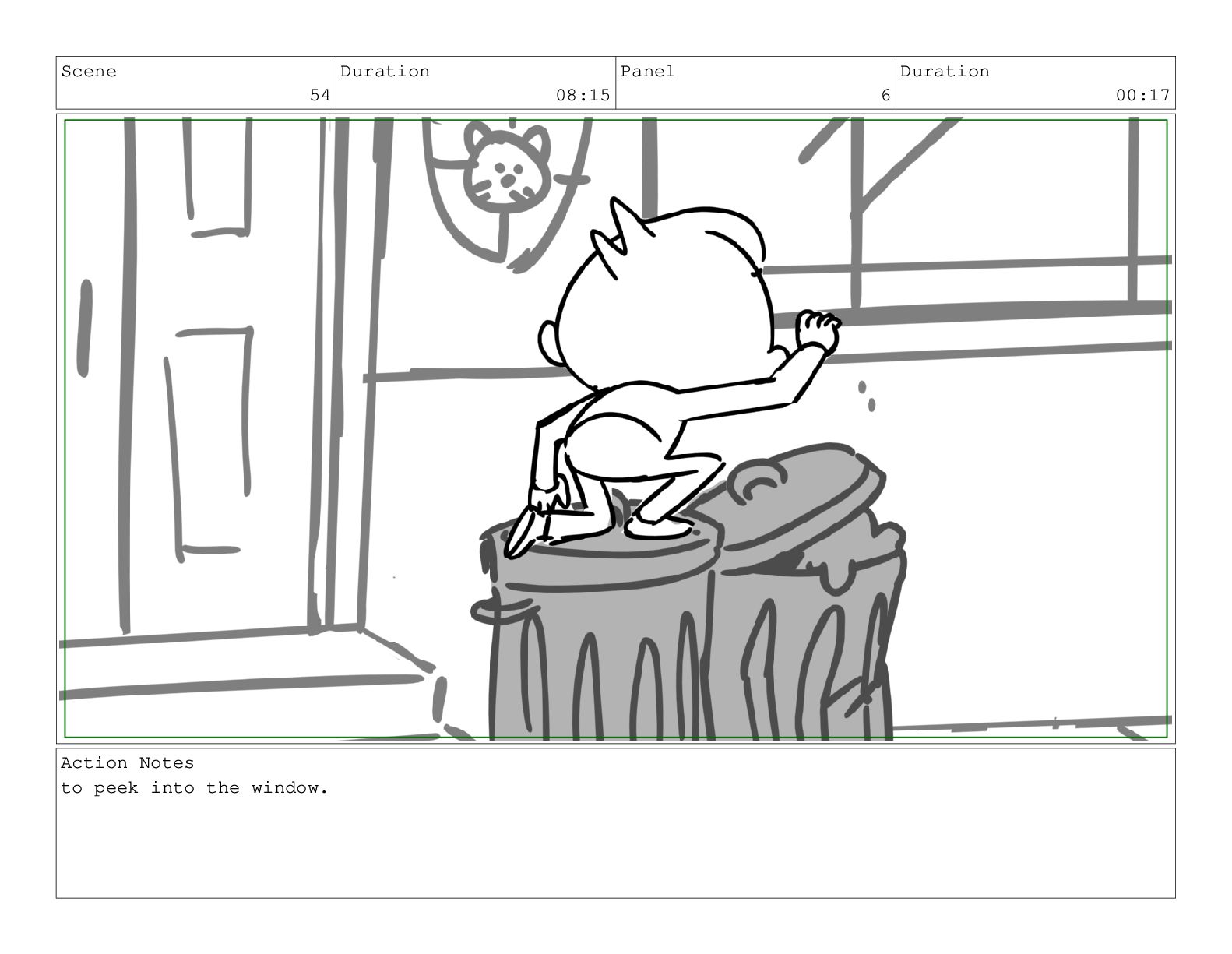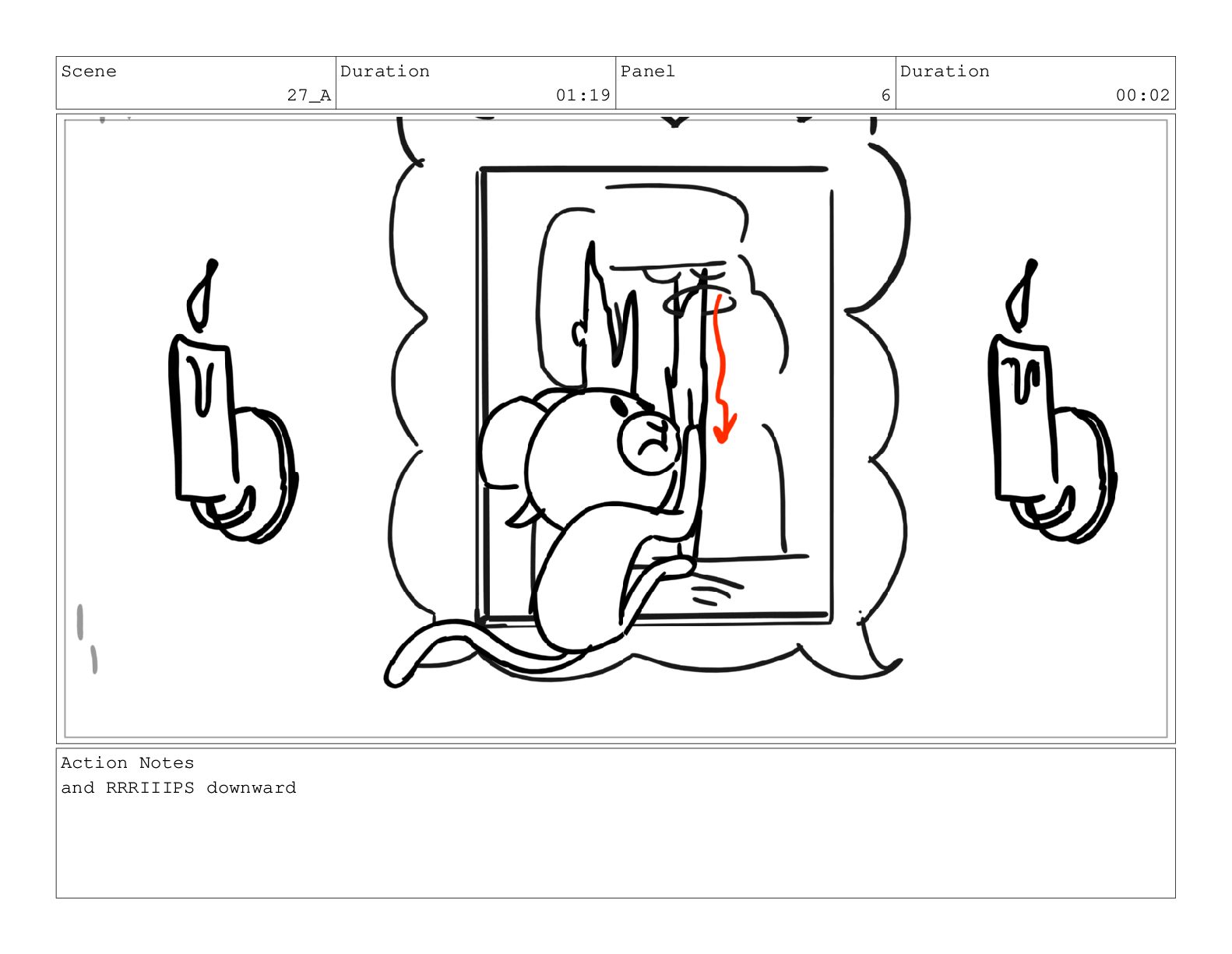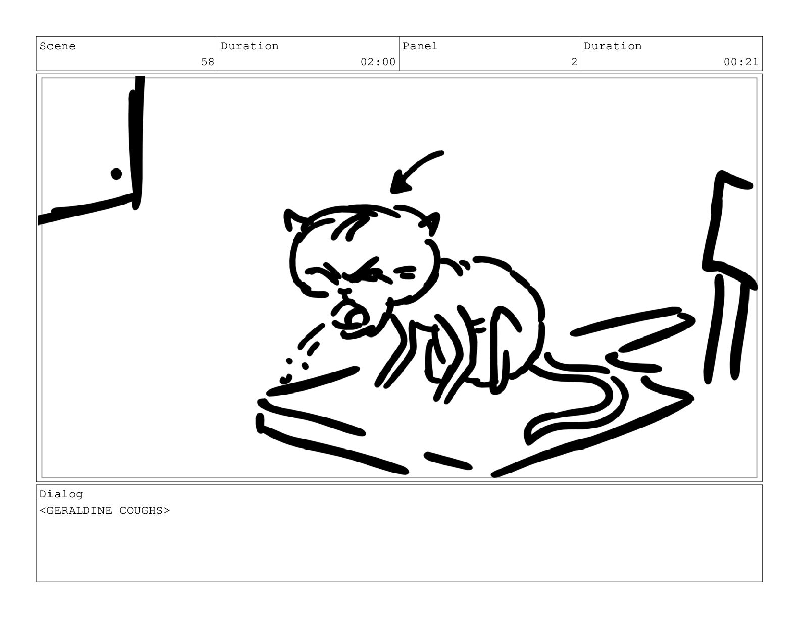 Scene 63 Duration 01:02 Panel 2 Duration 00:08 Action Notes