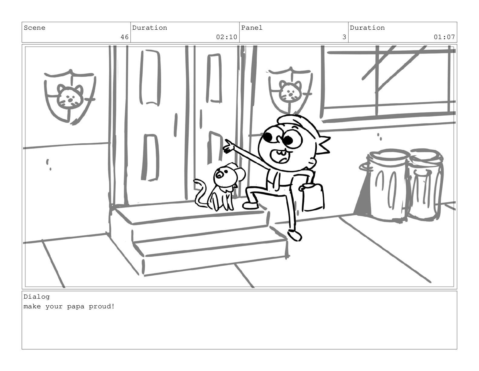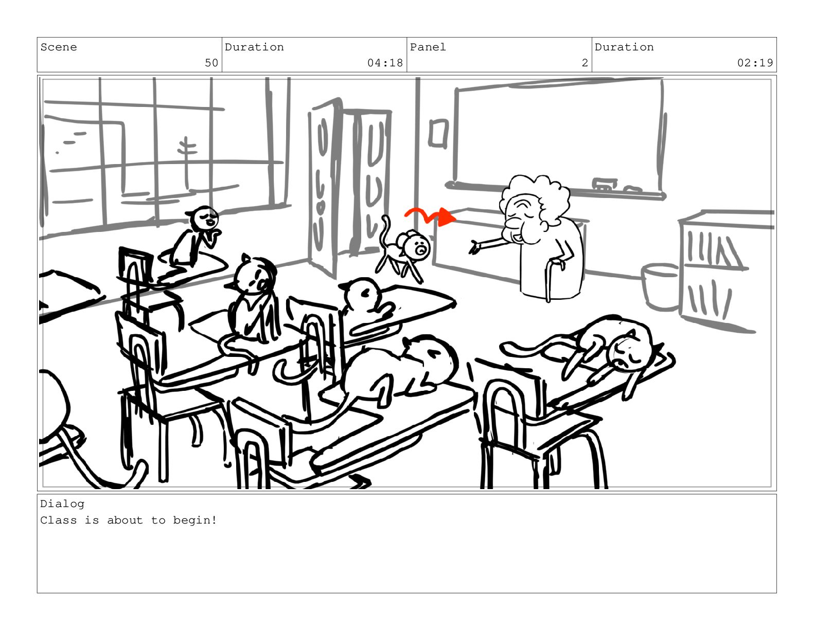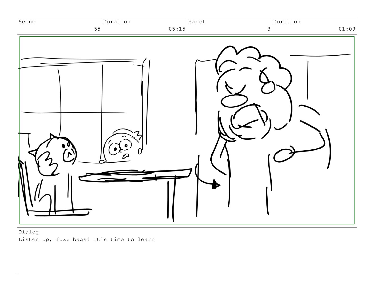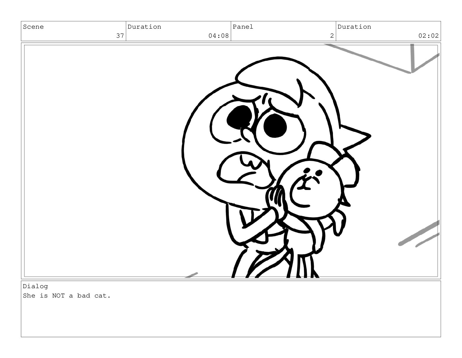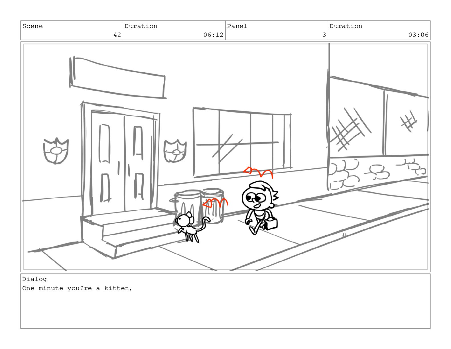 Scene 75 Duration 03:01 Panel 6 Duration 00:17 Dialog meow.