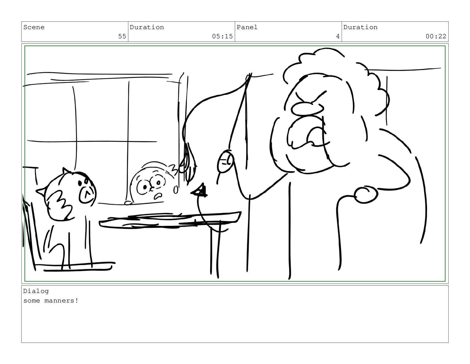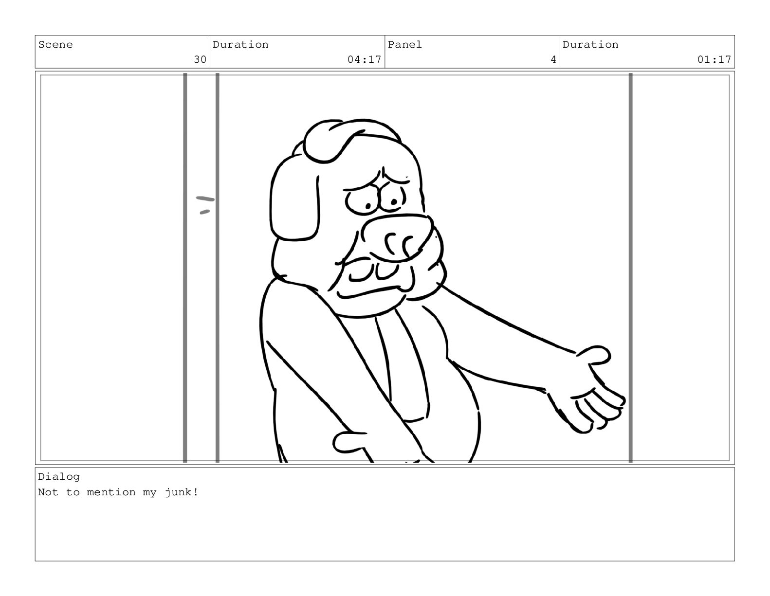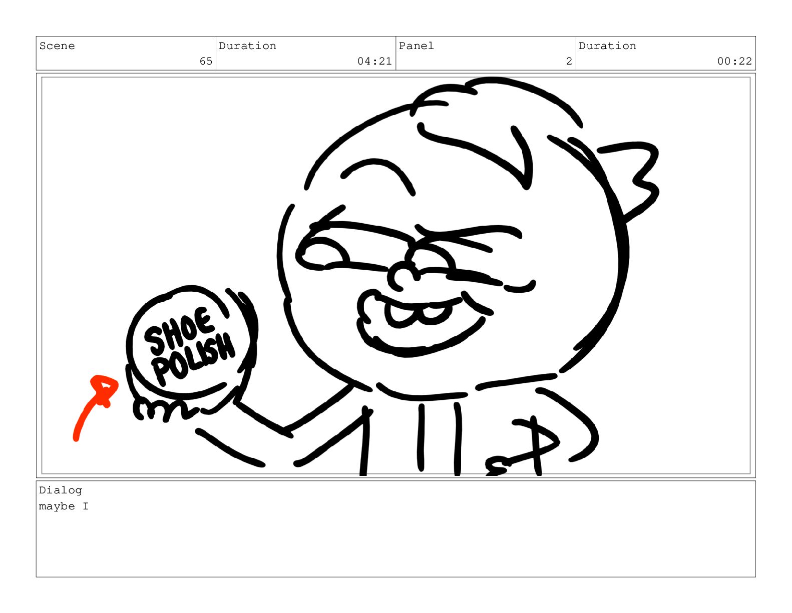 Scene 65 Duration 04:21 Panel 2 Duration 00:22 Dialog maybe