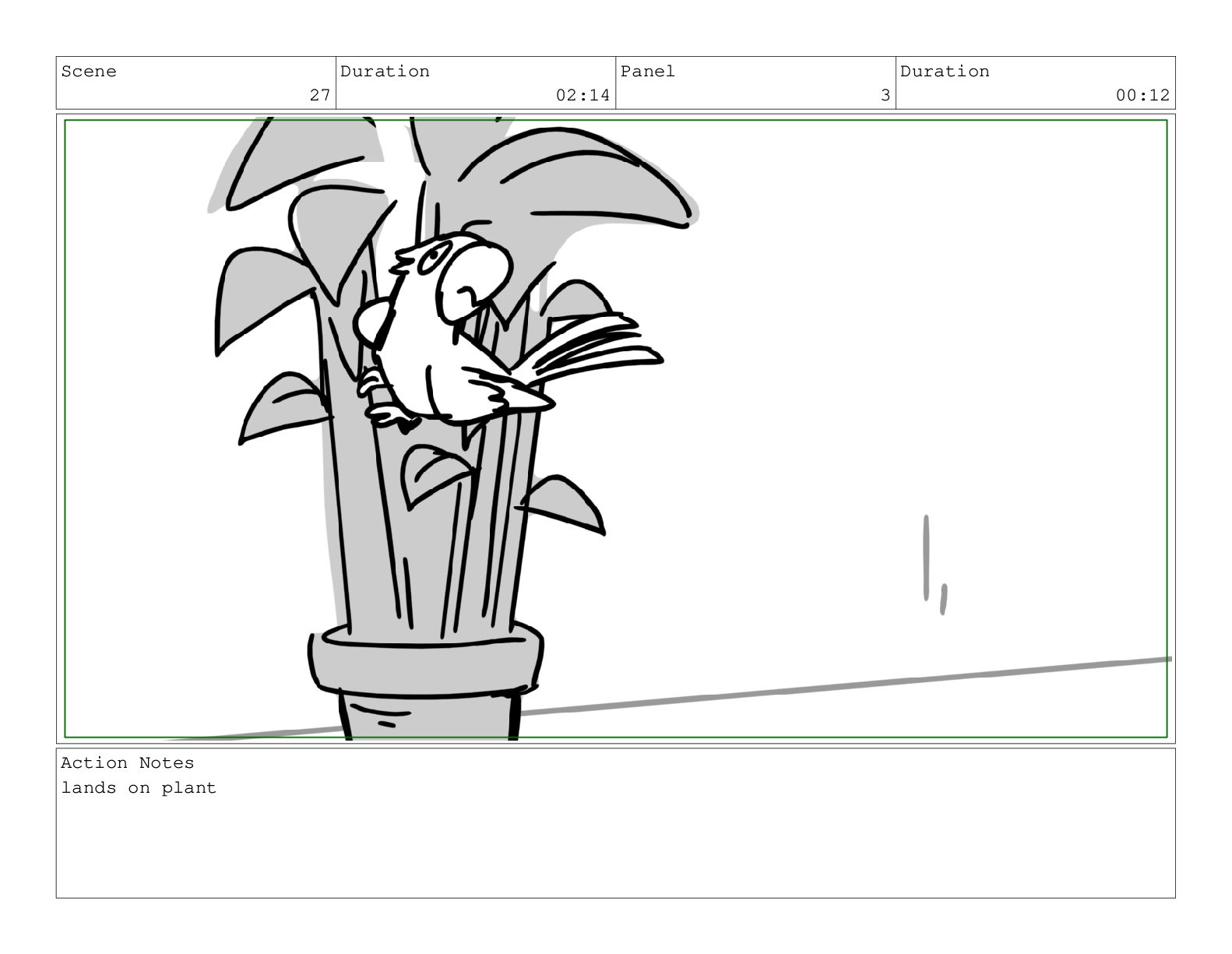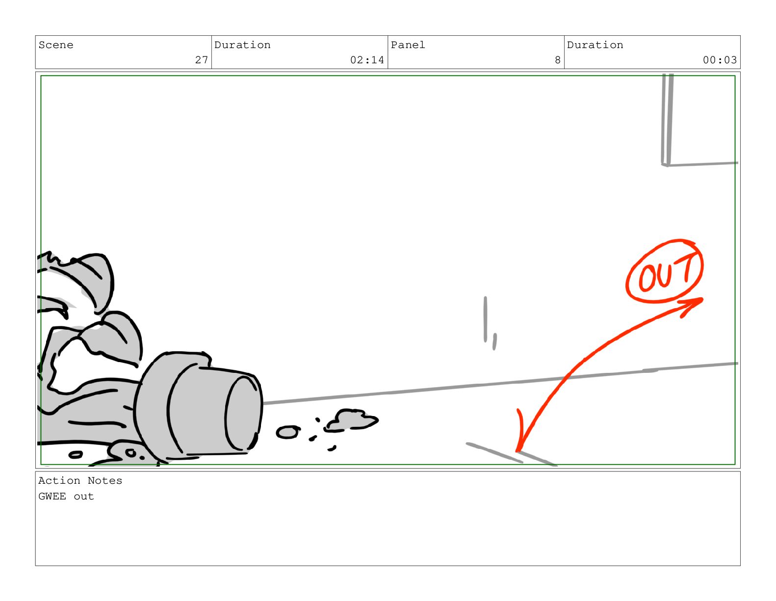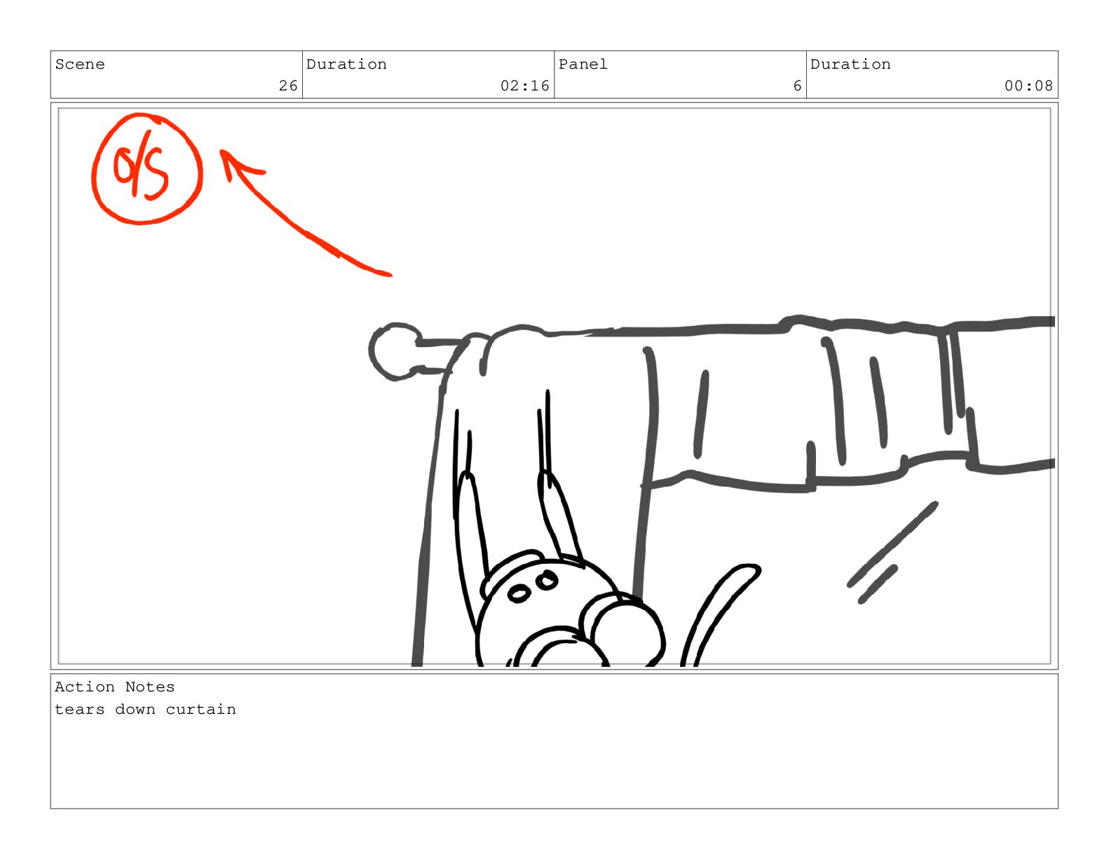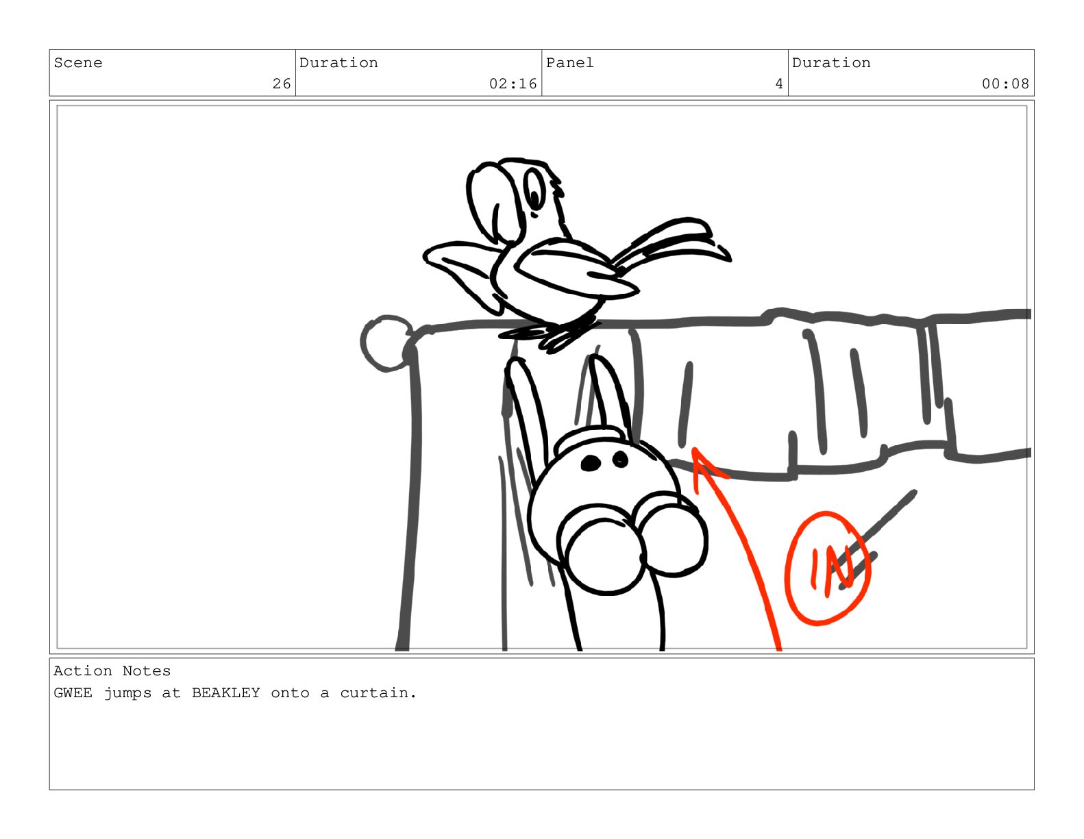 Scene 26 Duration 02:16 Panel 4 Duration 00:08 Action Notes