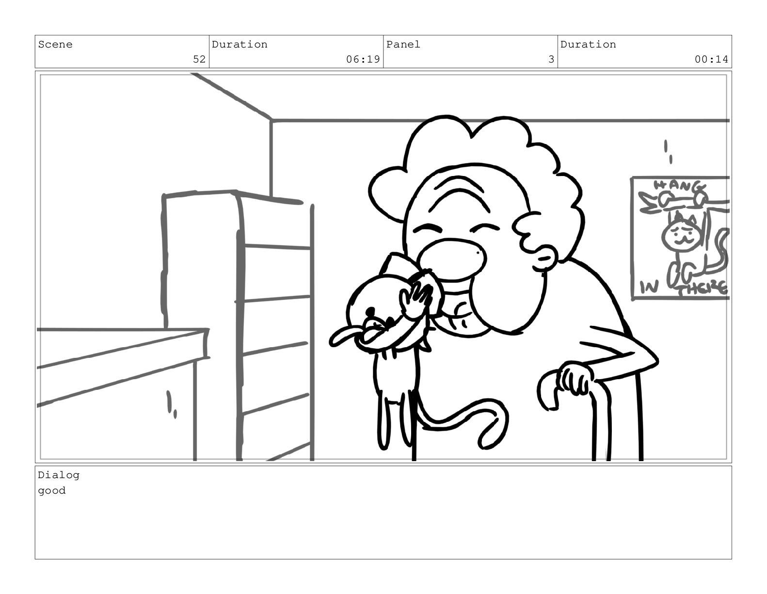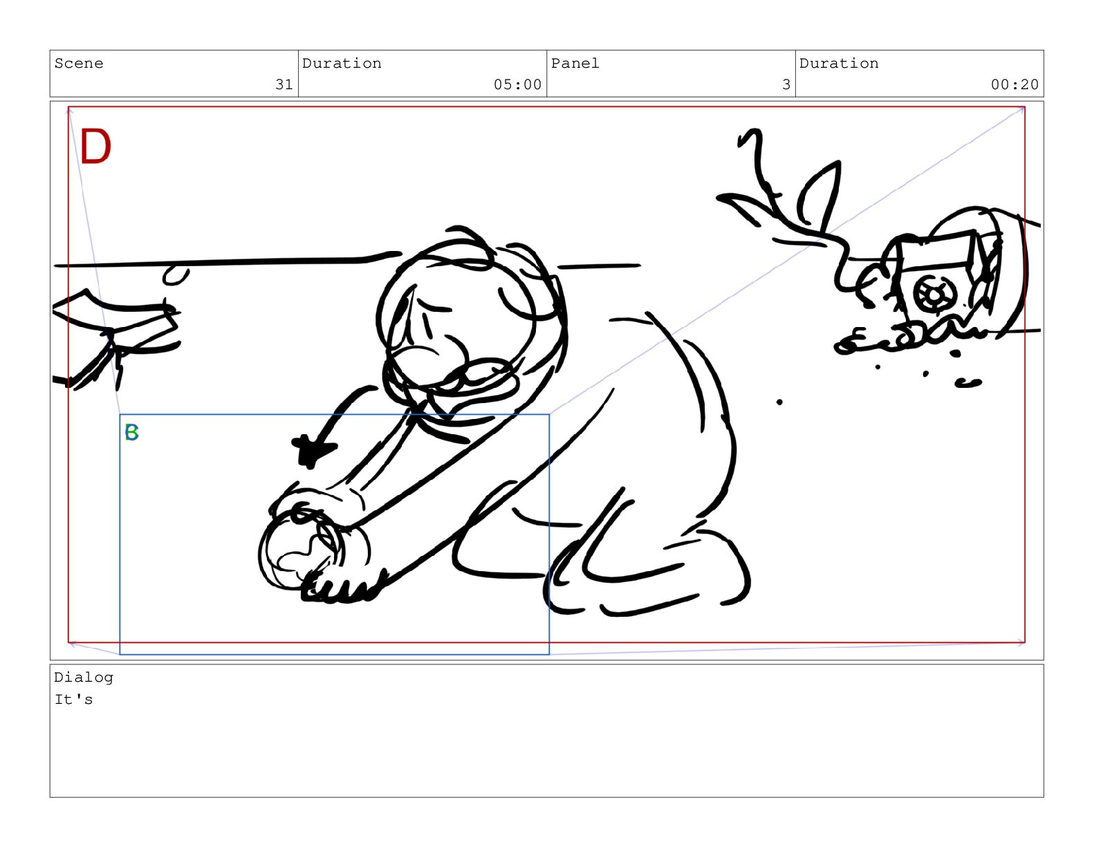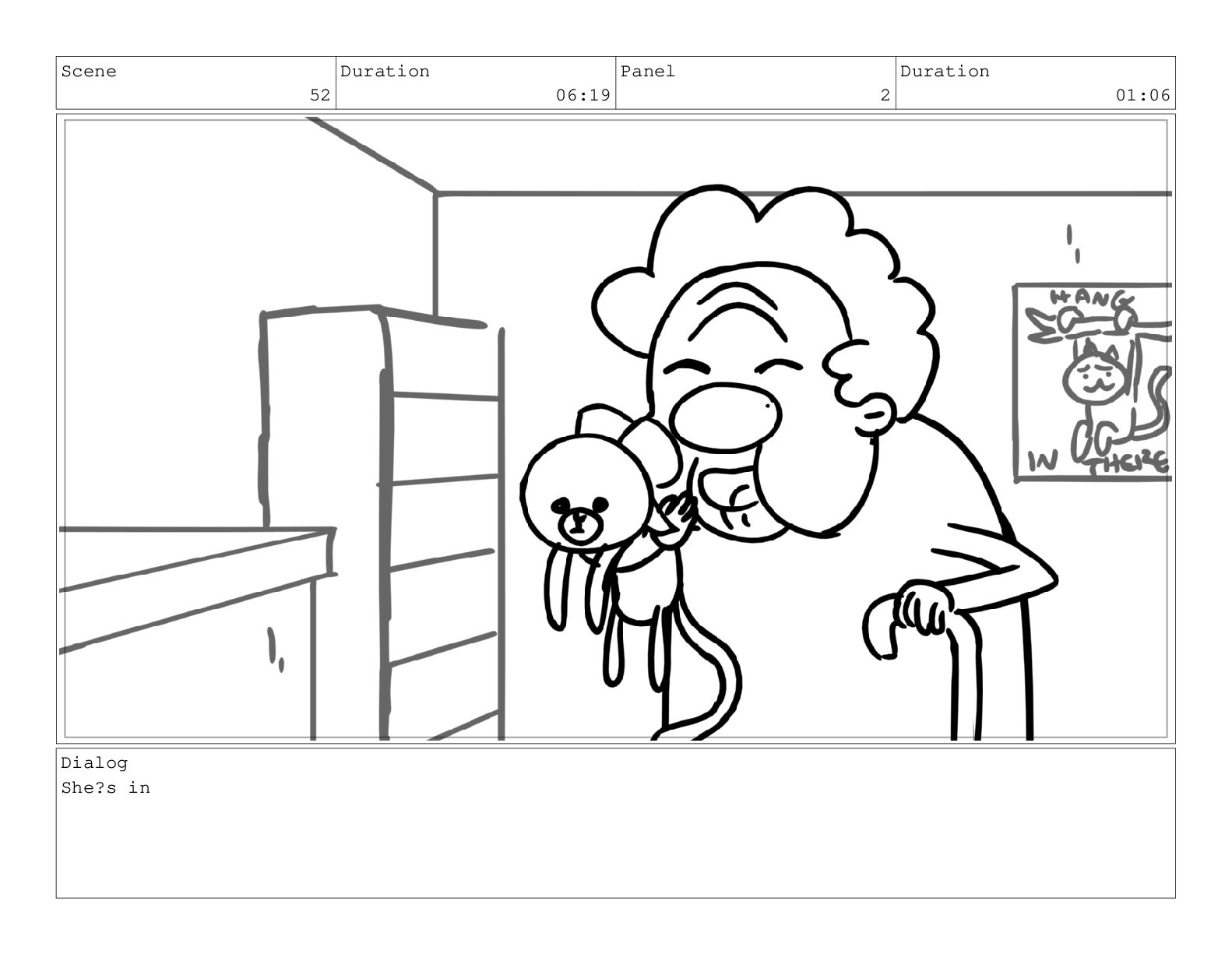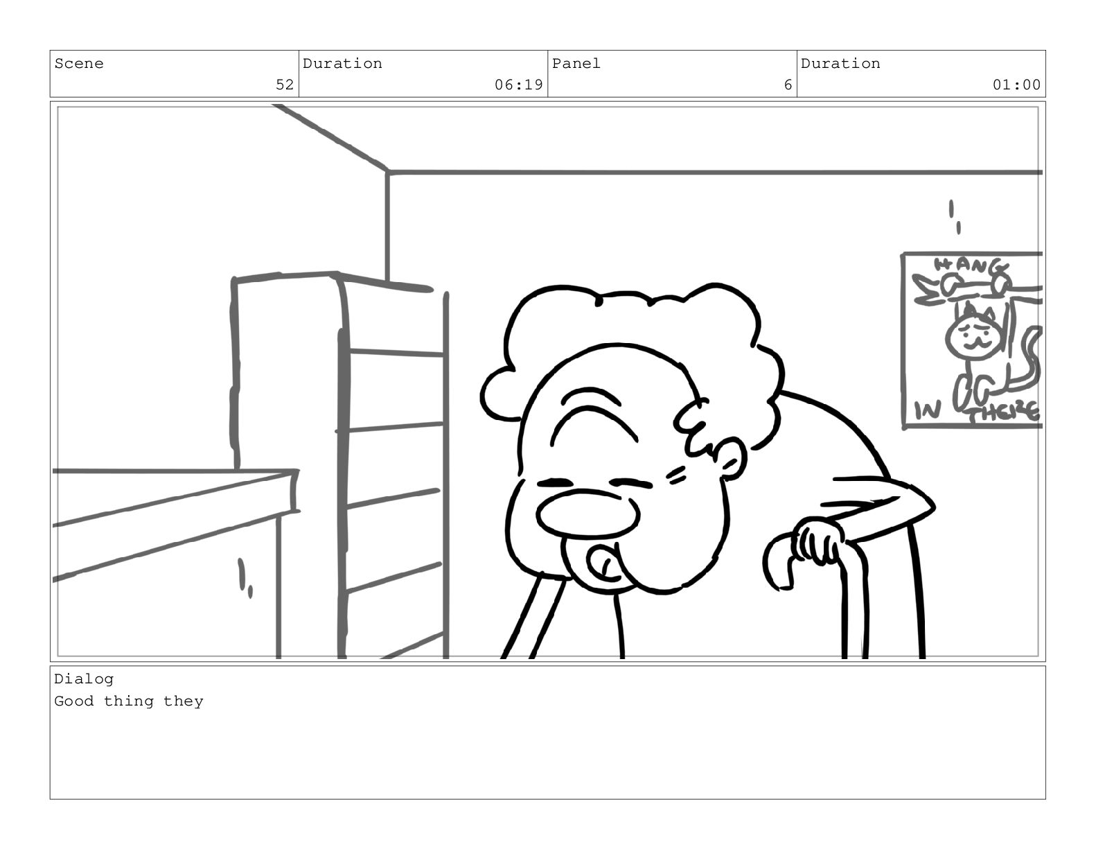 Scene 60 Duration 13:23 Panel 7 Duration 02:08 Dialog but