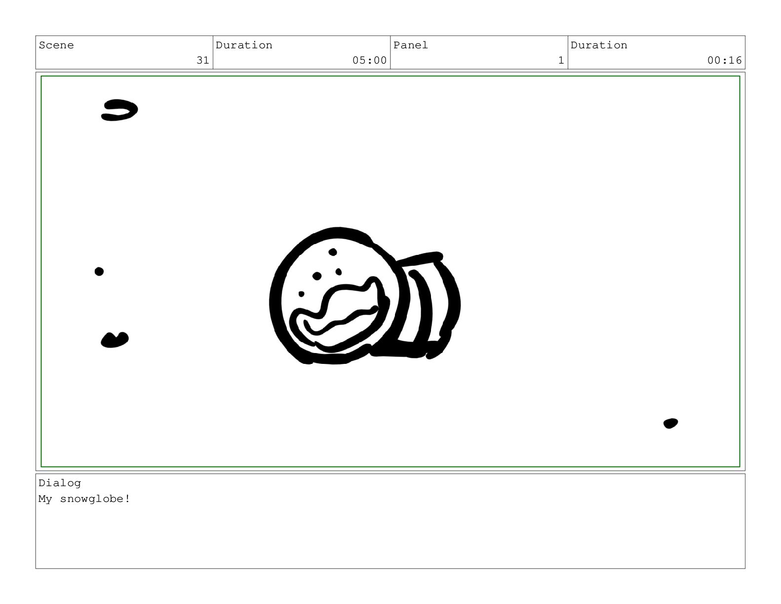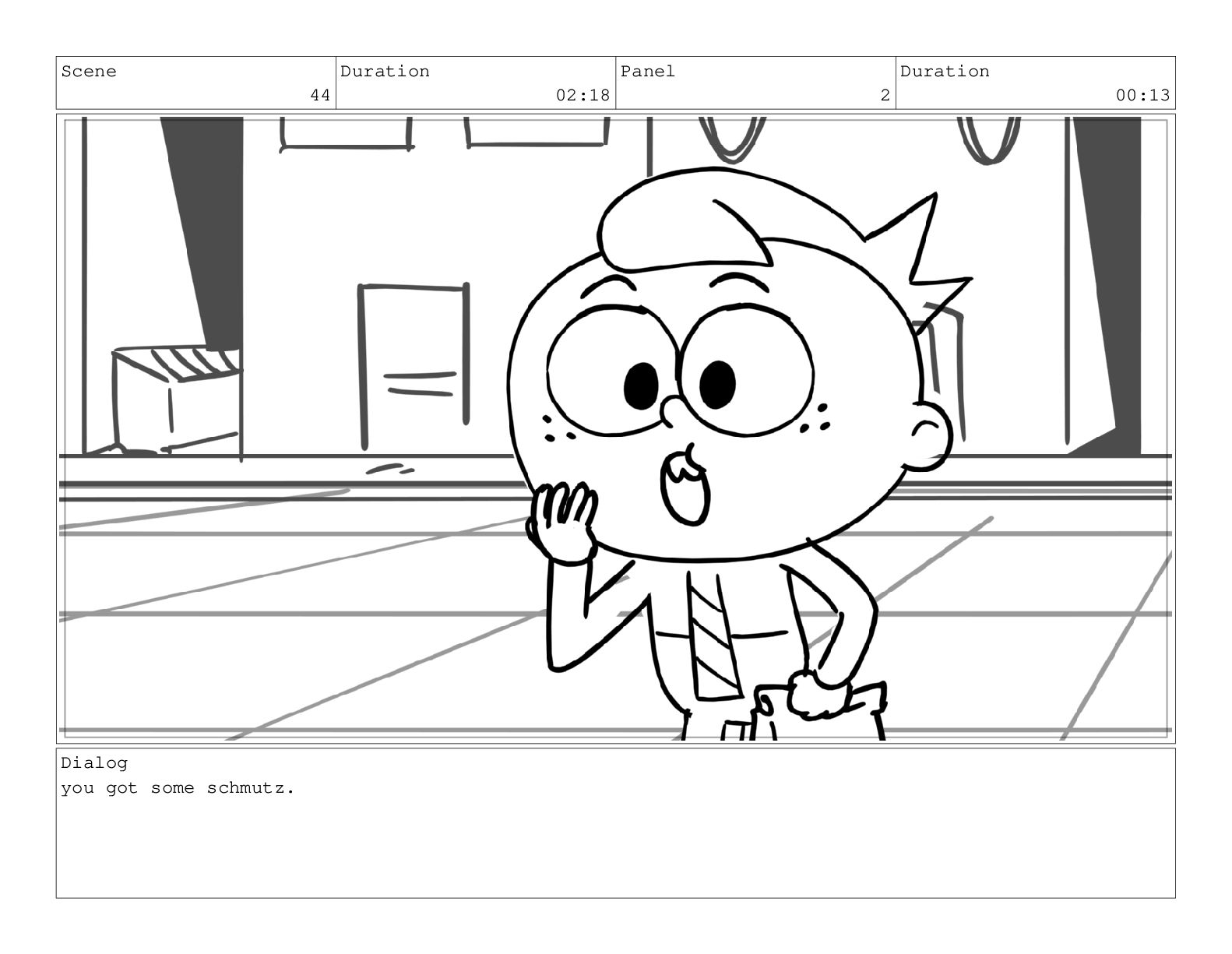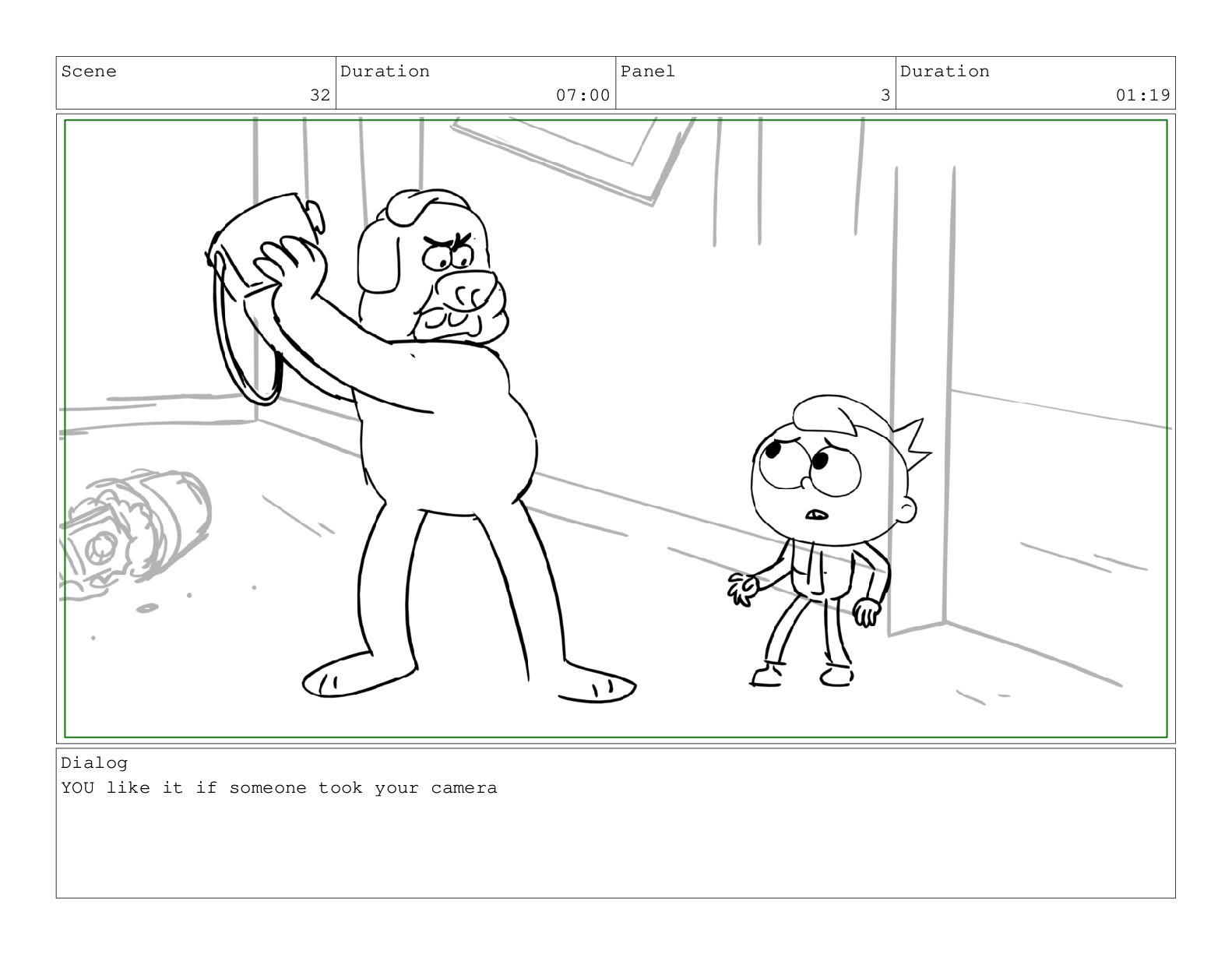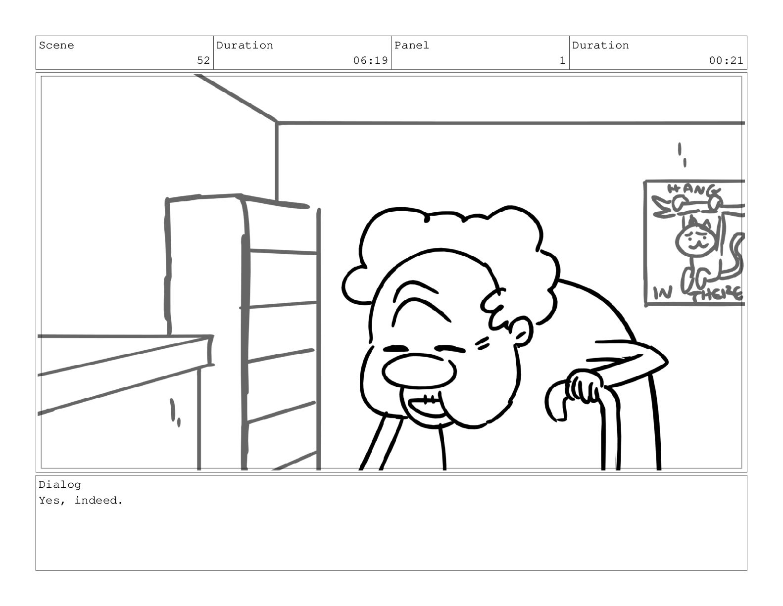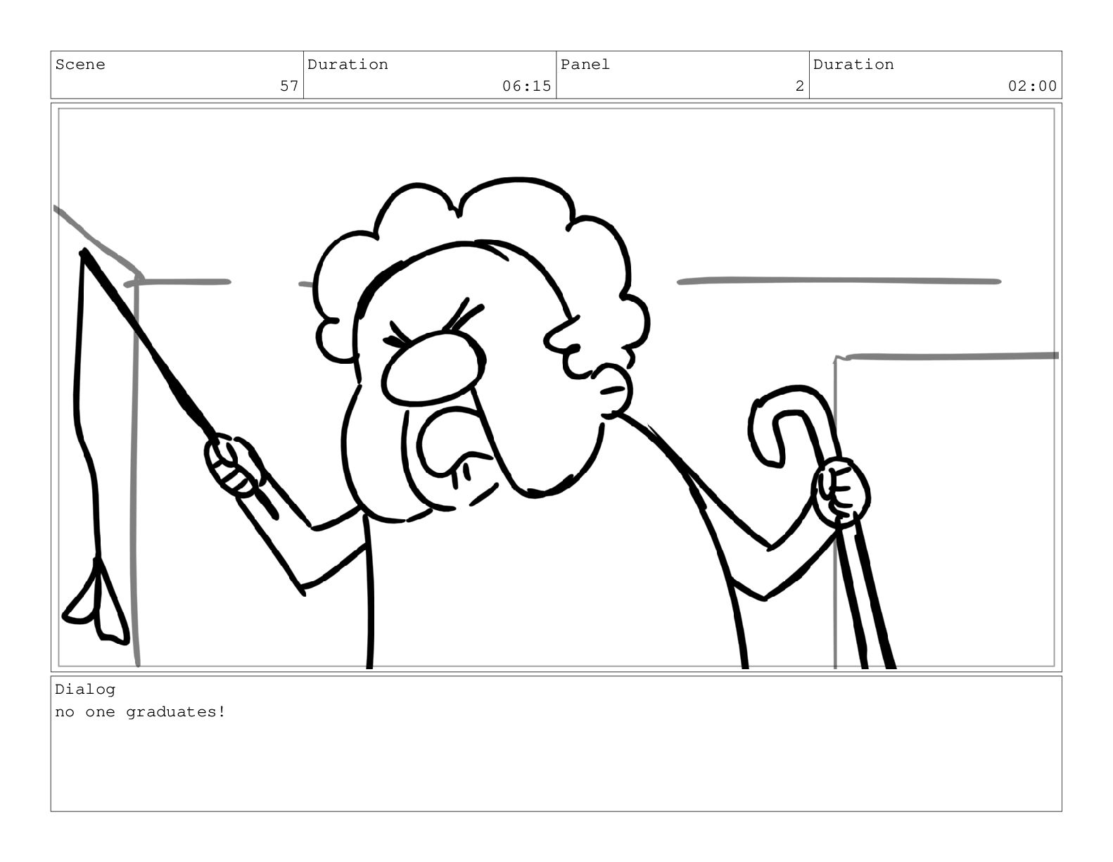 Scene 60 Duration 13:23 Panel 7 Duration 02:08 Dialog but