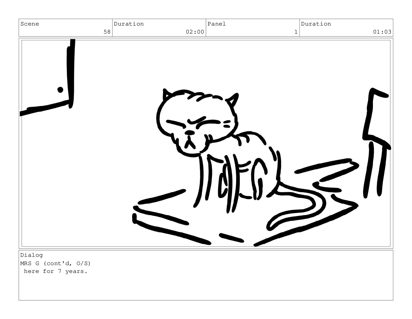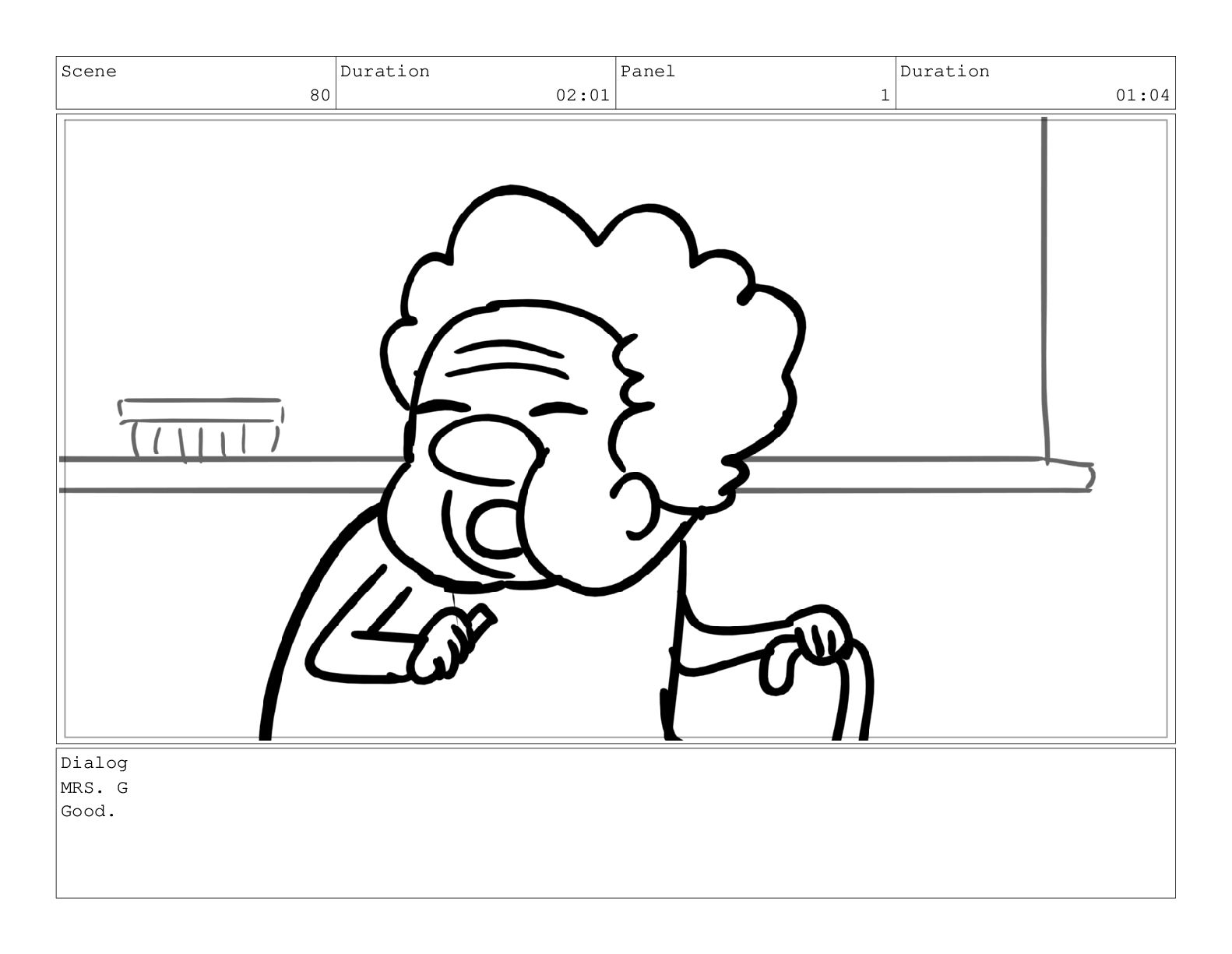 Scene 80 Duration 02:01 Panel 1 Duration 01:04 Dialog MRS.