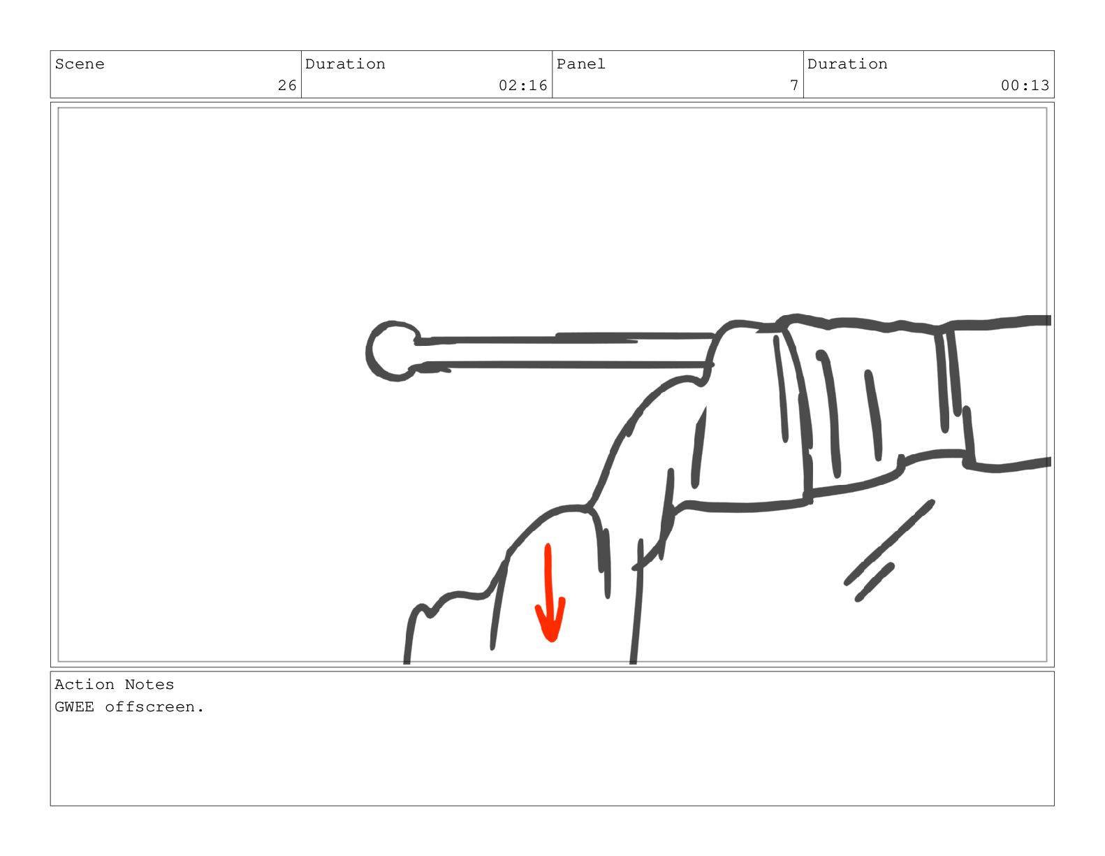 Scene 26 Duration 02:16 Panel 7 Duration 00:13 Action Notes