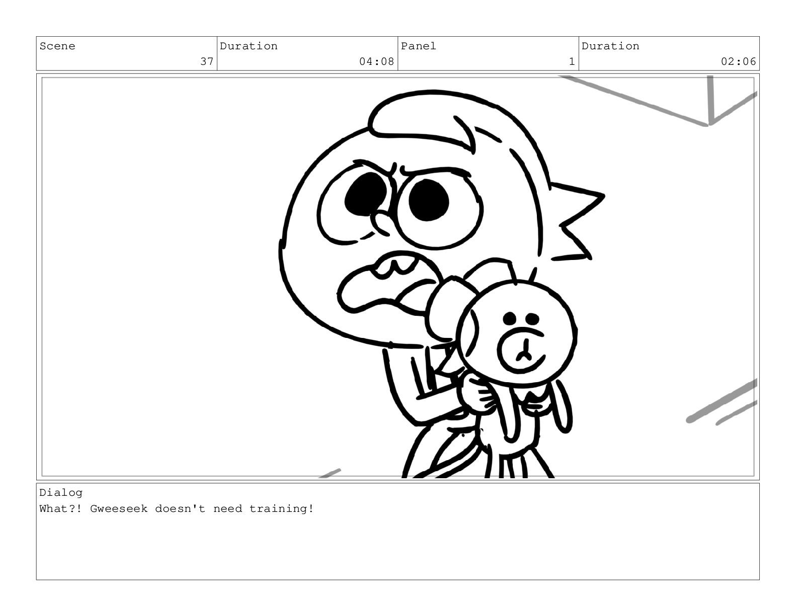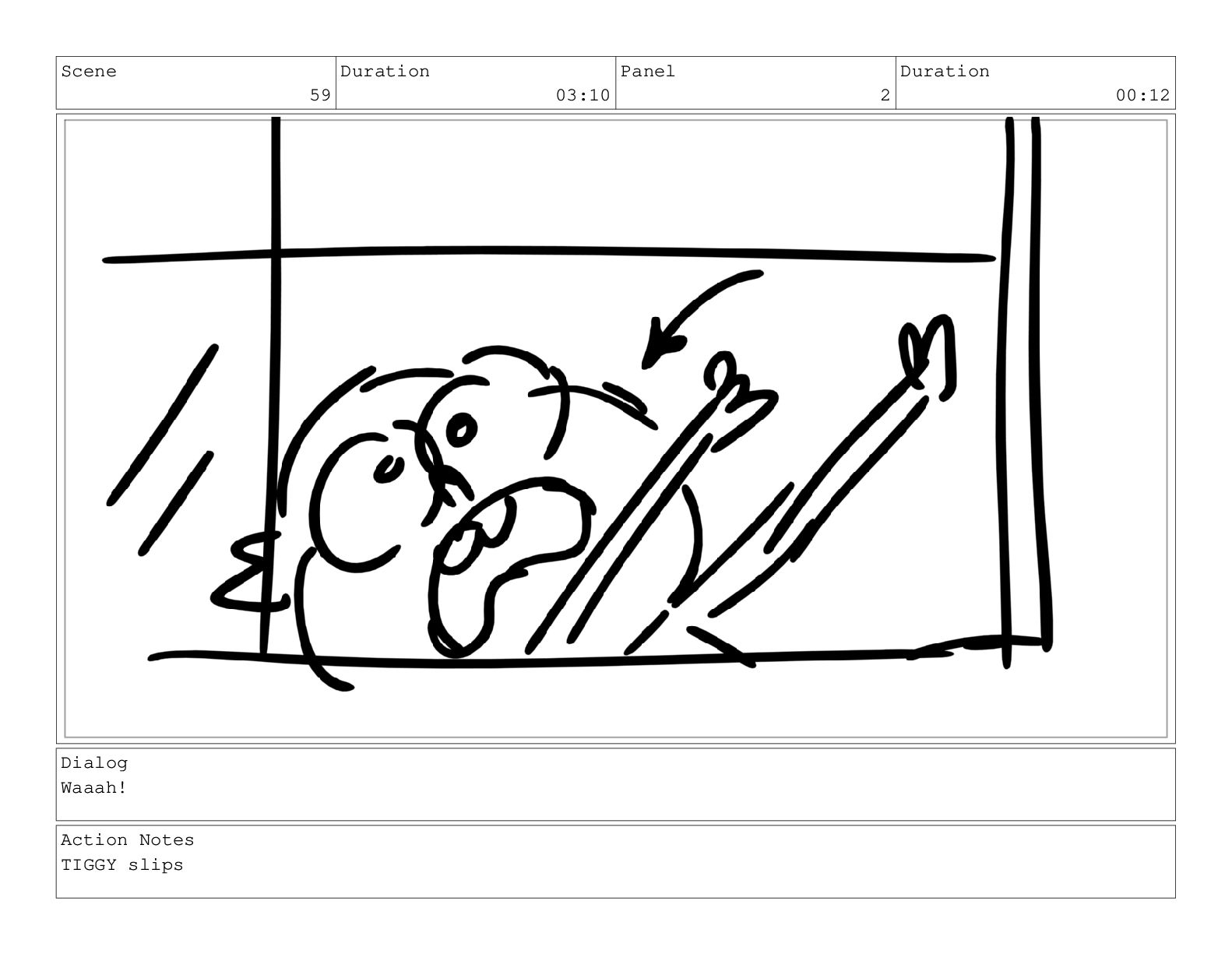 Scene 59 Duration 03:10 Panel 2 Duration 00:12 Dialog Waaah!