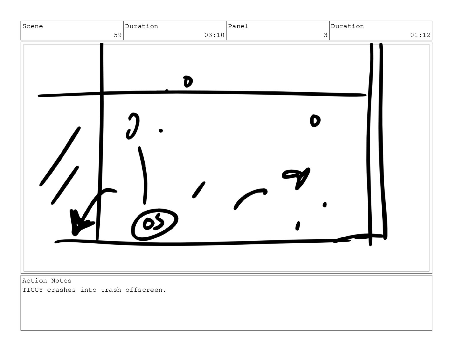Scene 59 Duration 03:10 Panel 3 Duration 01:12 Action Notes