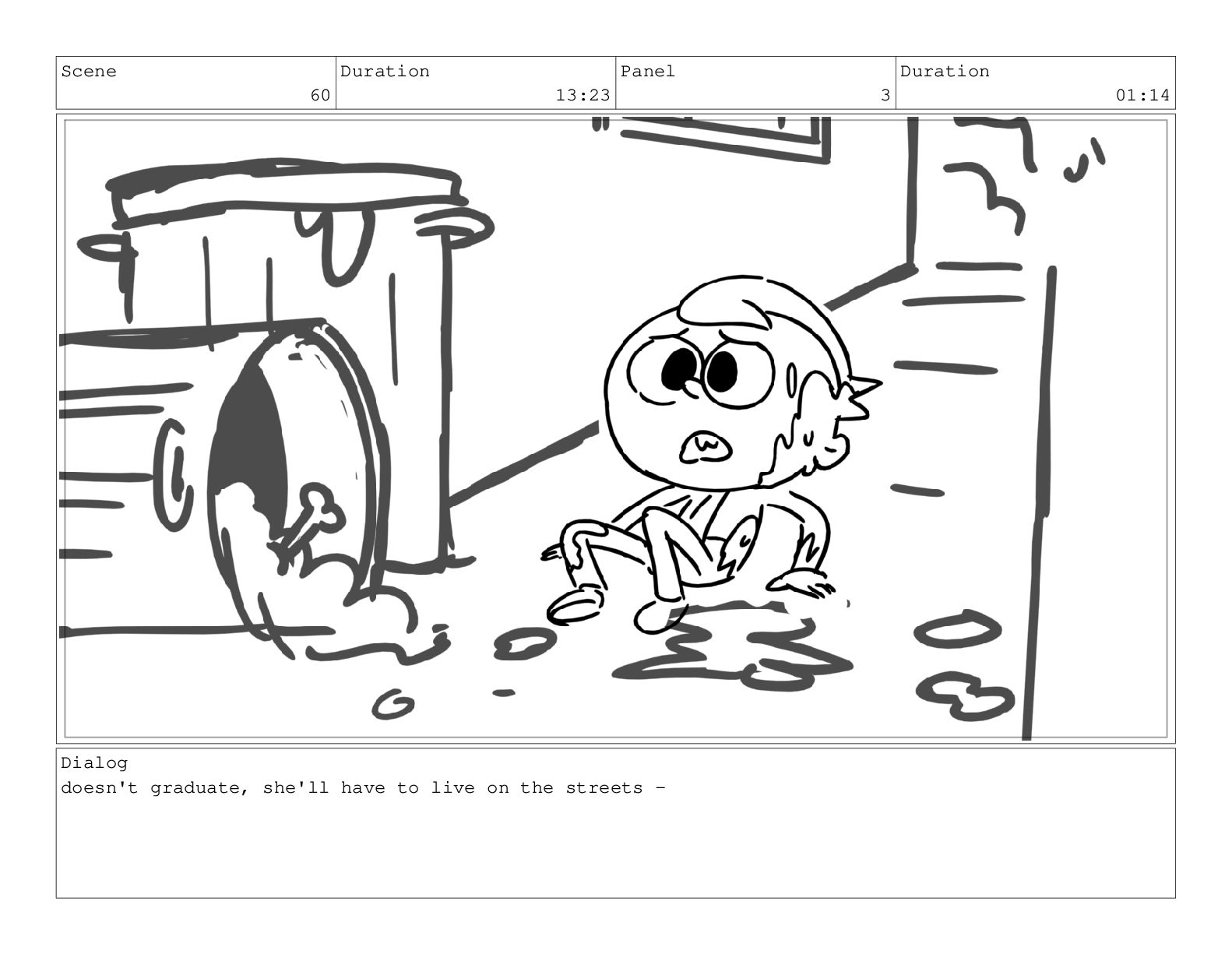 Scene 60 Duration 13:23 Panel 3 Duration 01:14 Dialog doesn't
