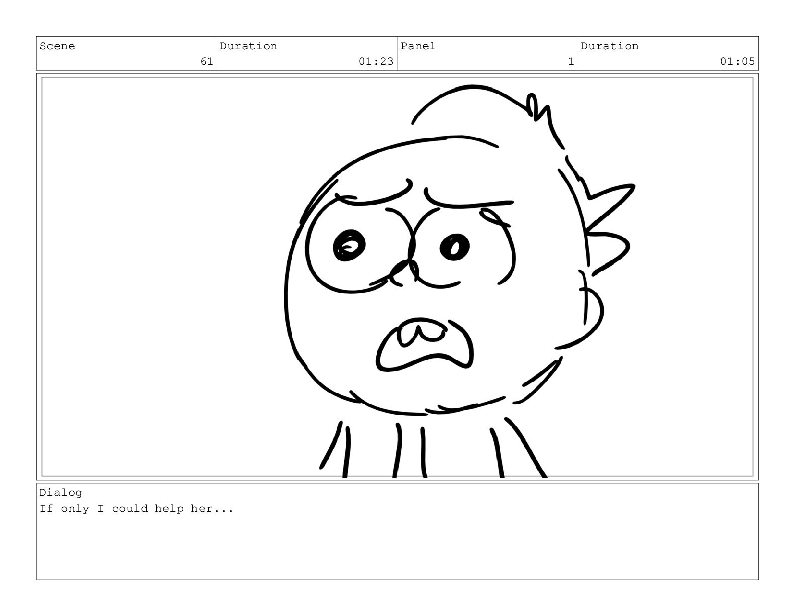 Scene 61 Duration 01:23 Panel 1 Duration 01:05 Dialog If