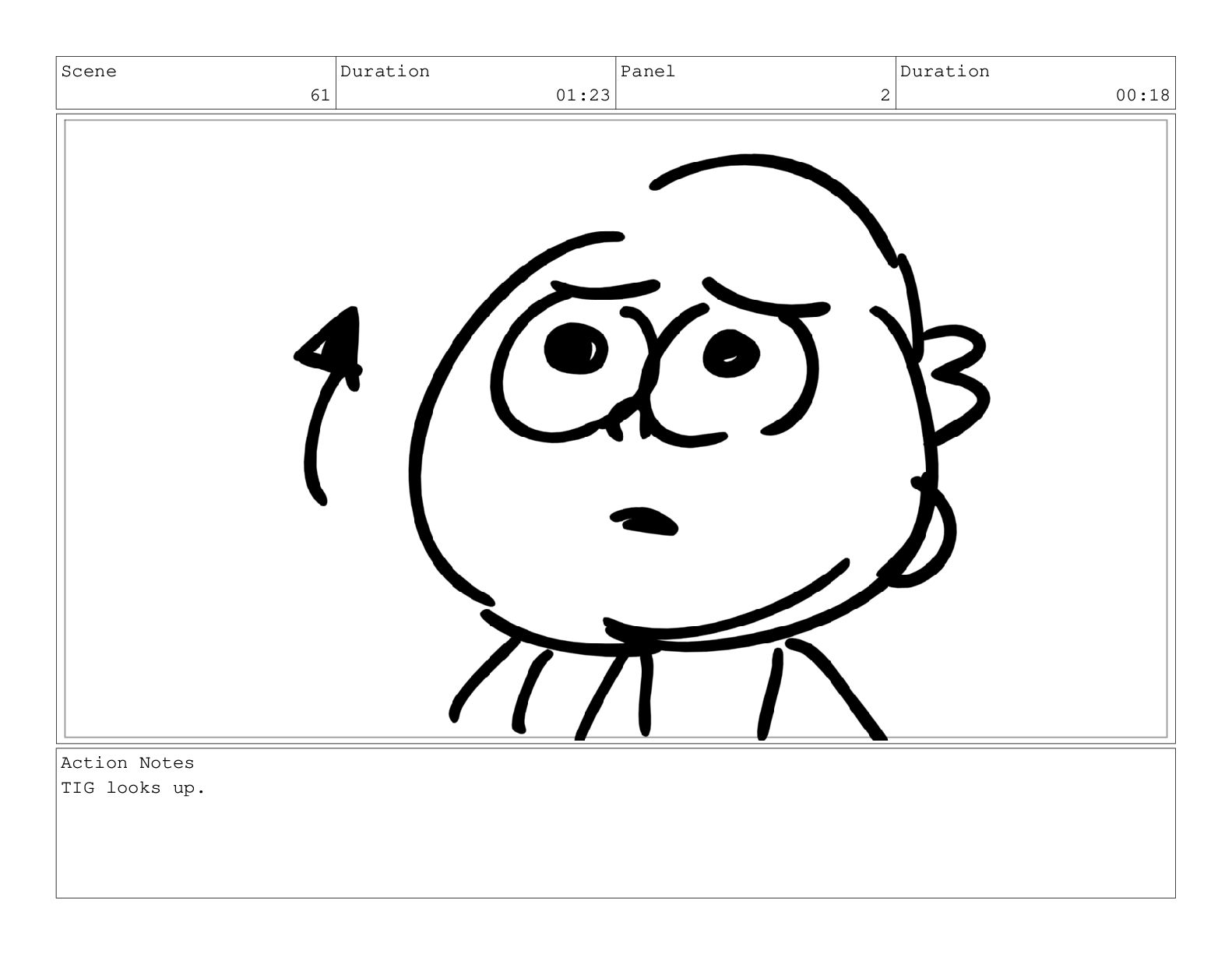 Scene 61 Duration 01:23 Panel 2 Duration 00:18 Action Notes