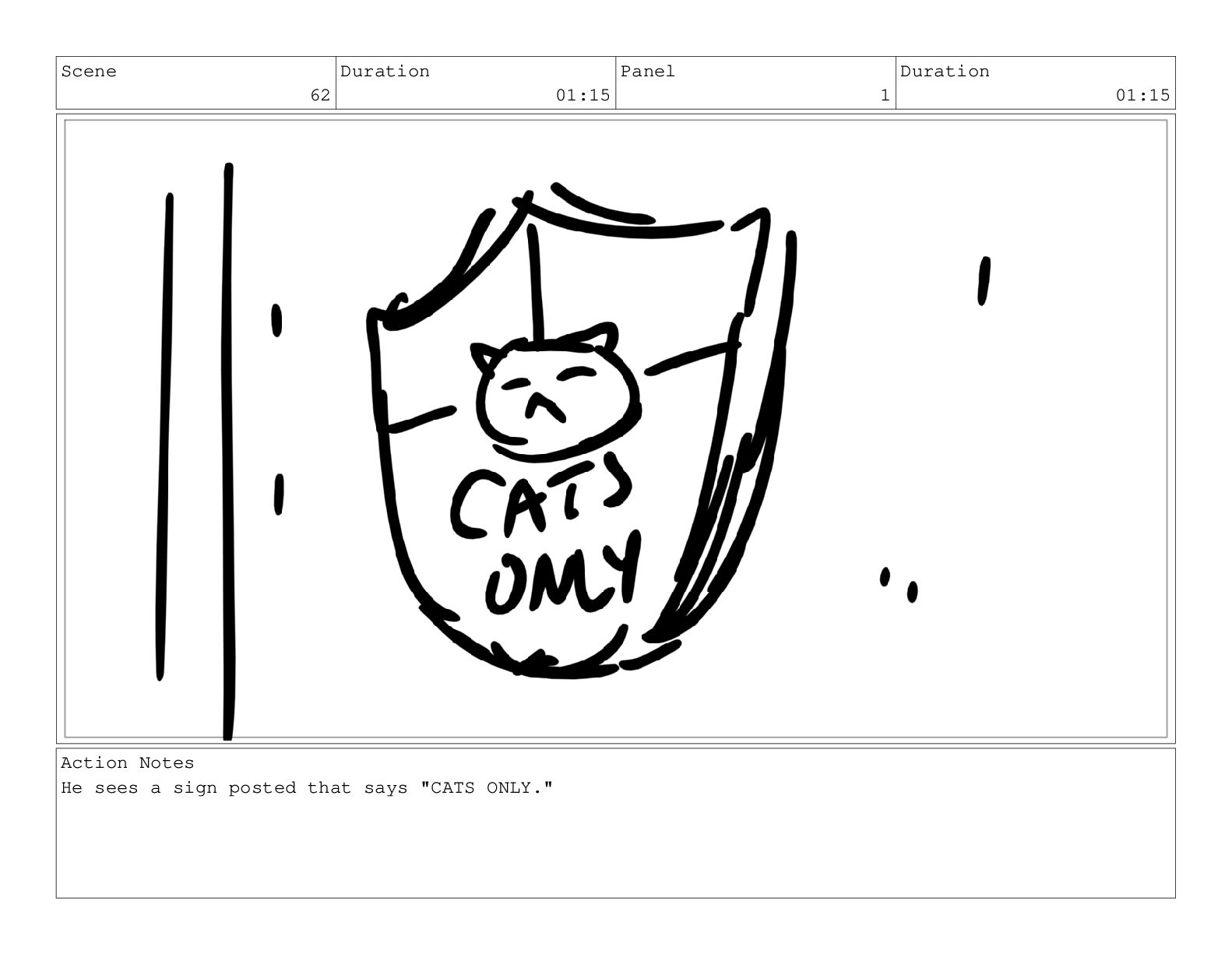 He sees a sign posted that says "CATS ONLY."