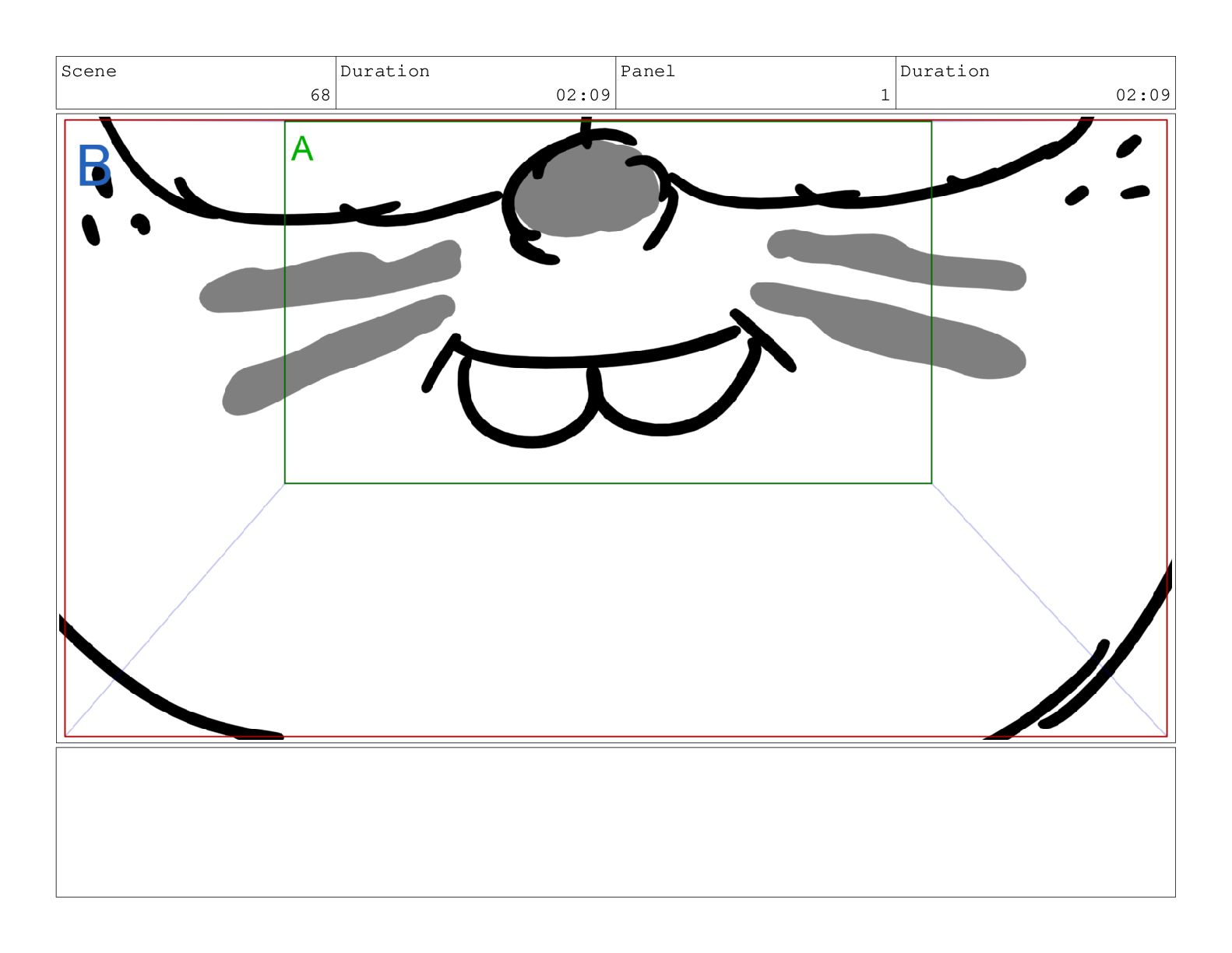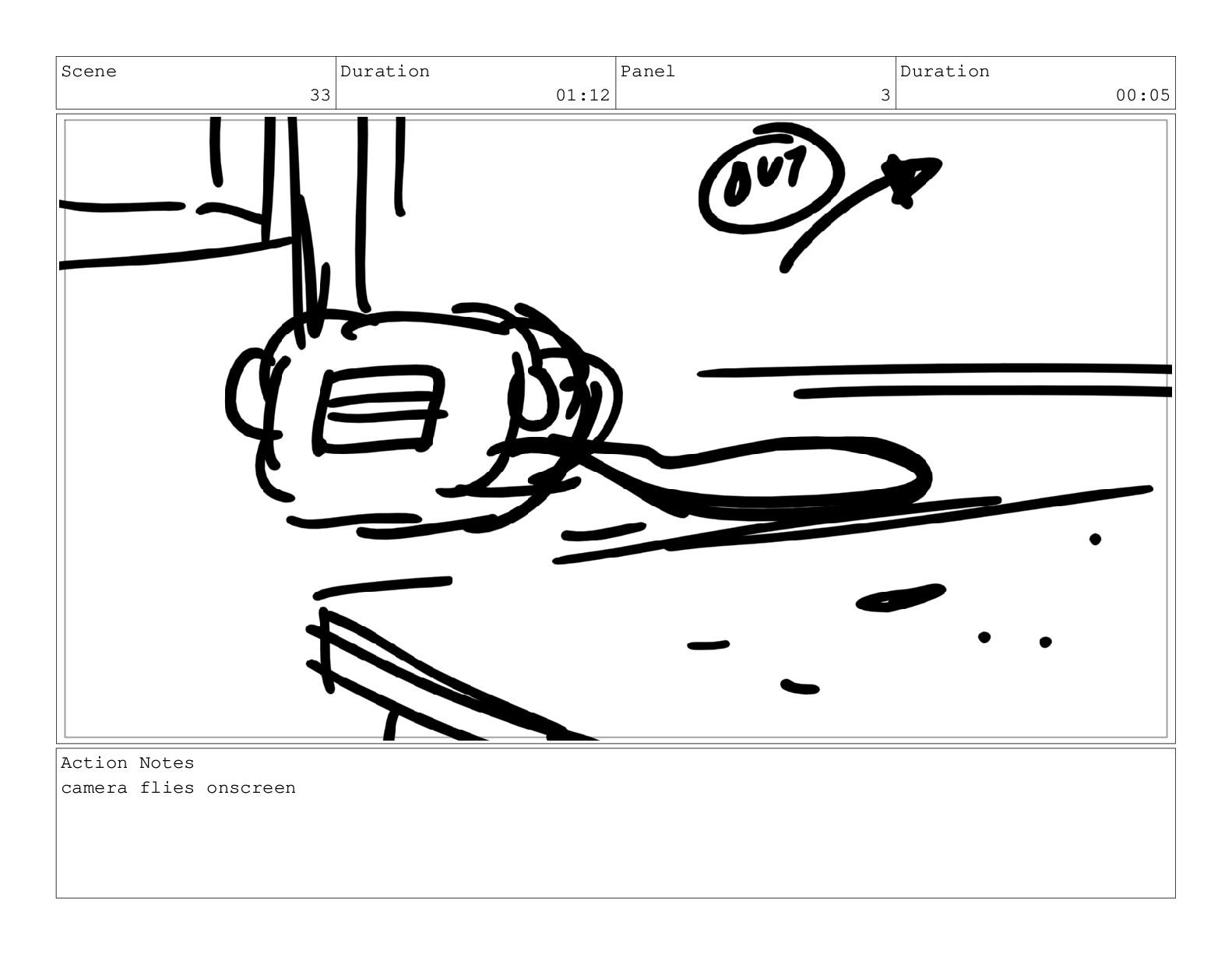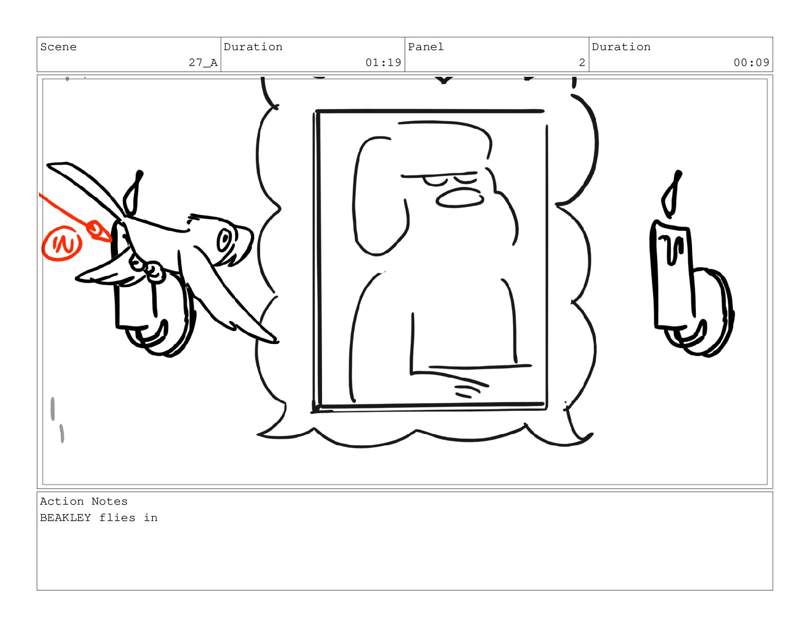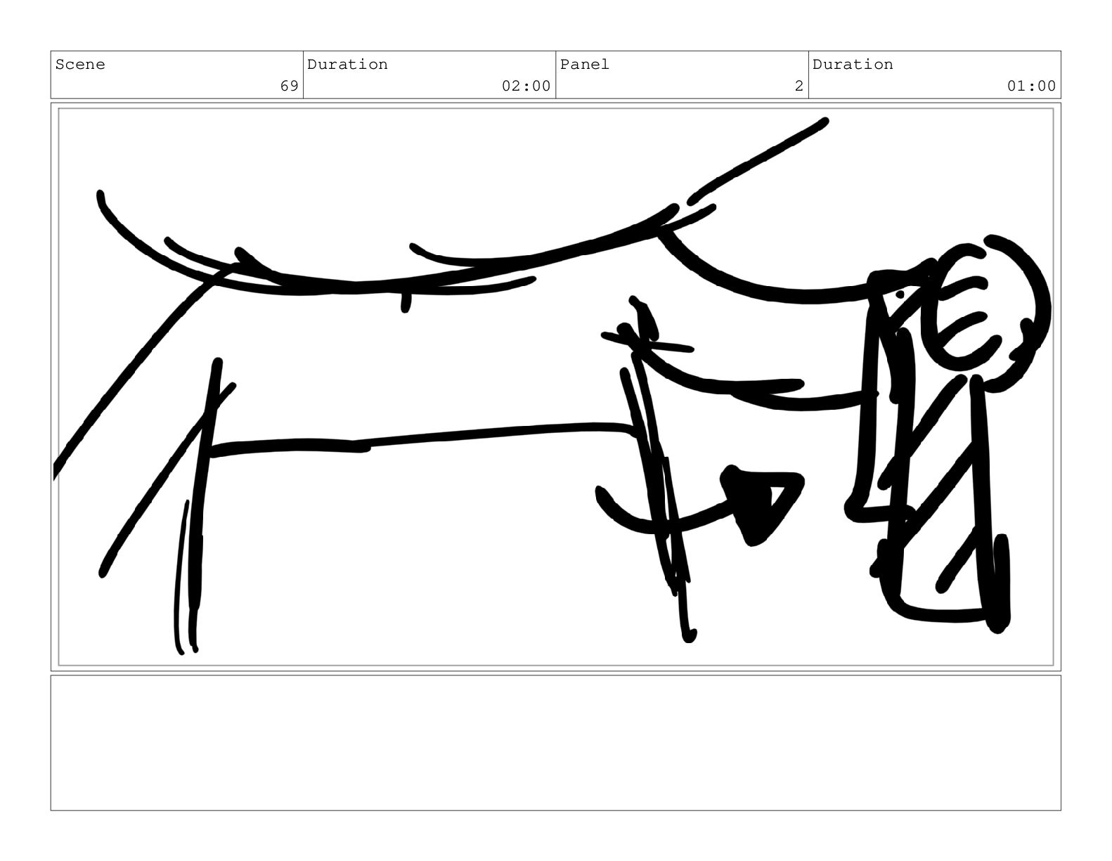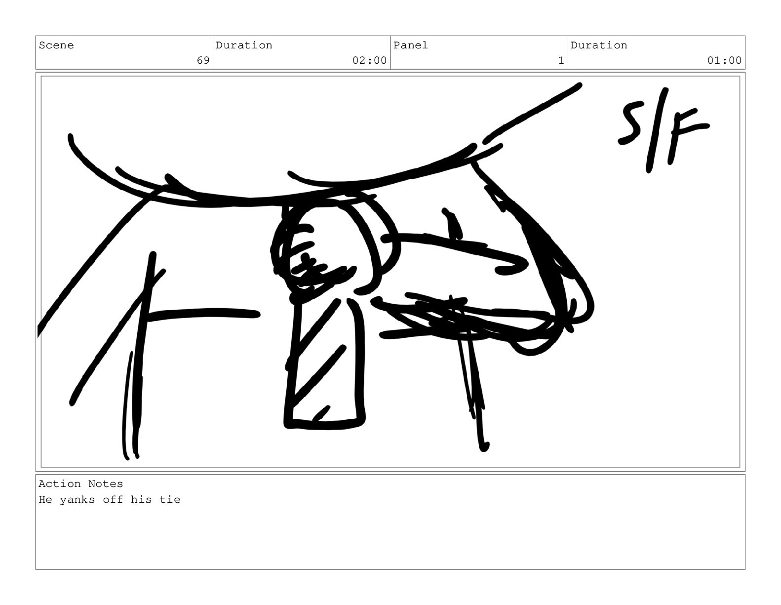 Scene 69 Duration 02:00 Panel 1 Duration 01:00 Action Notes