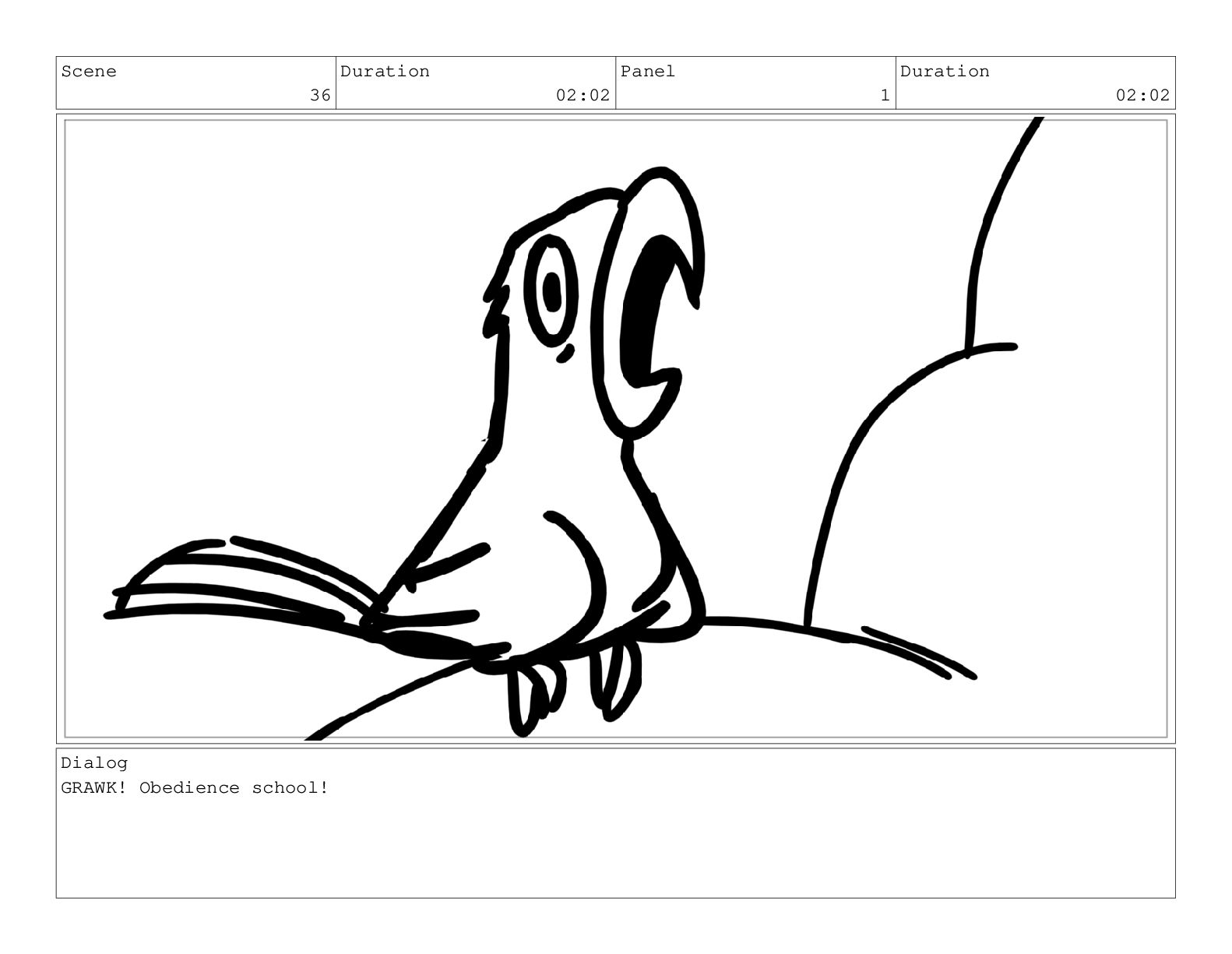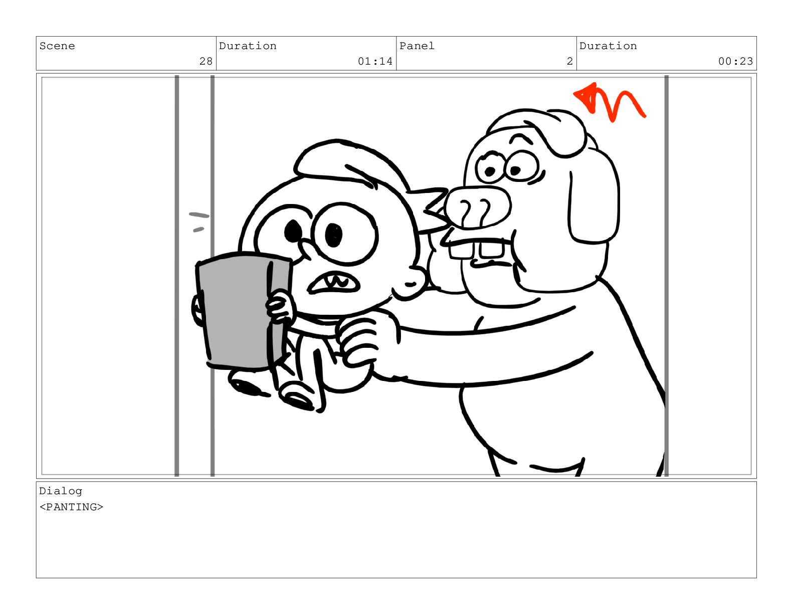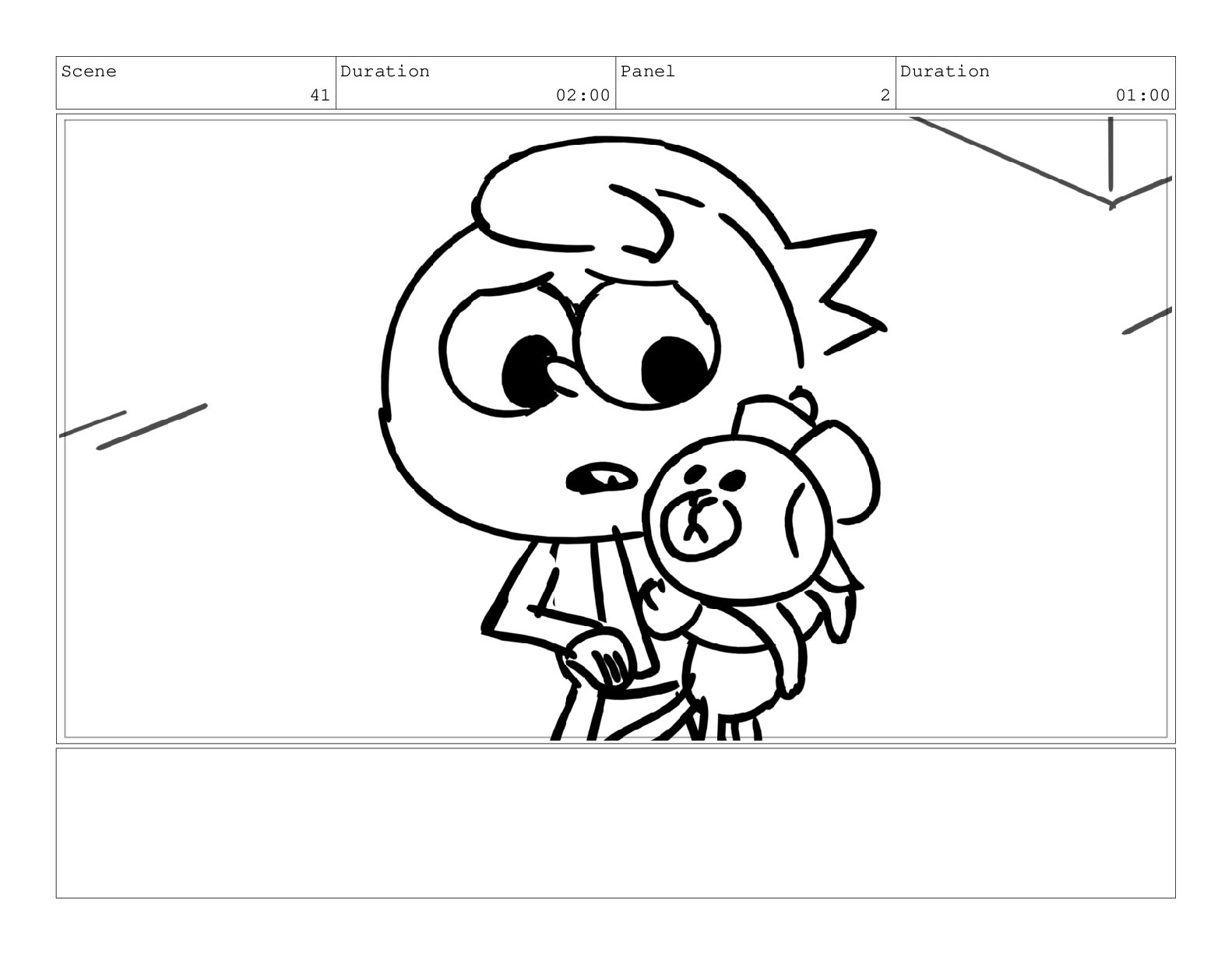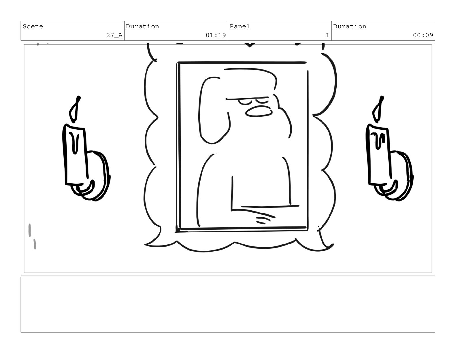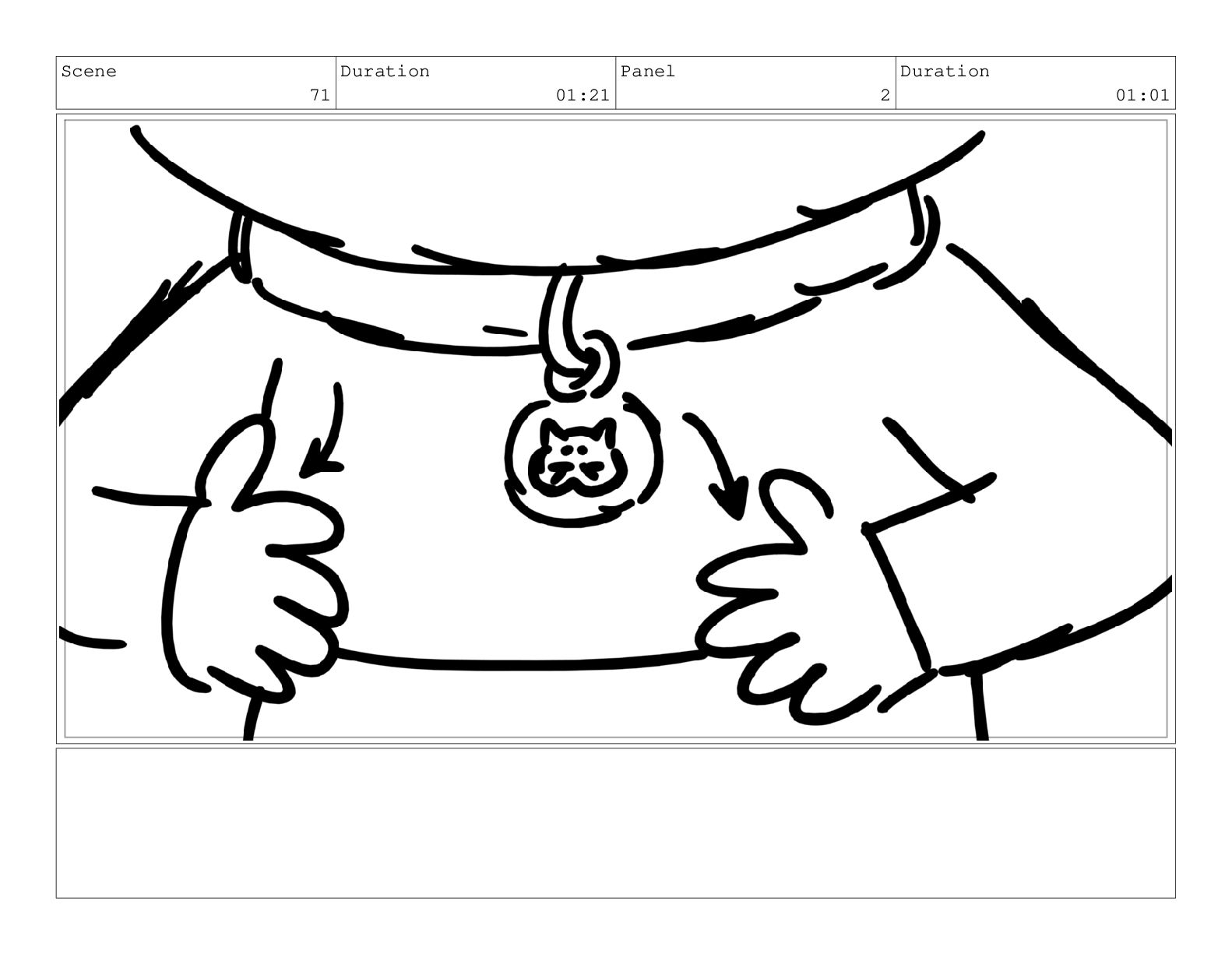Scene 69 Duration 02:00 Panel 1 Duration 01:00 Action Notes