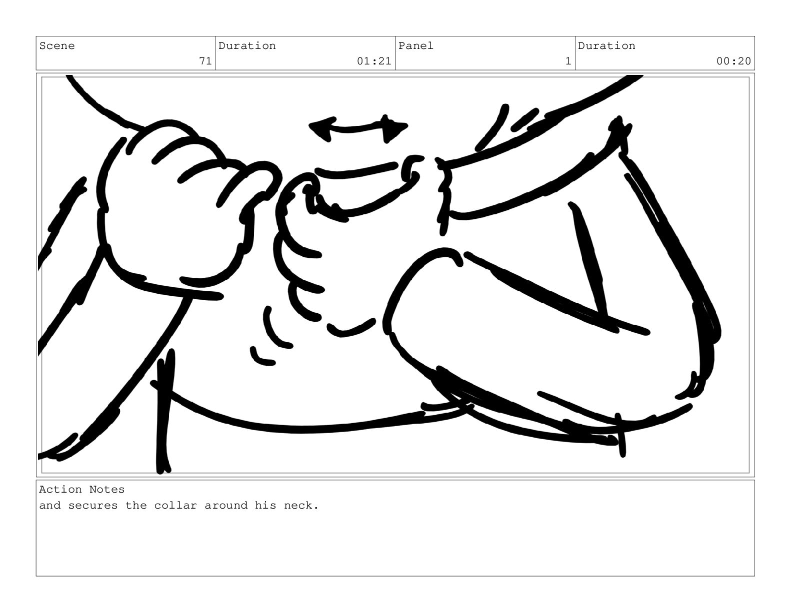 Scene 71 Duration 01:21 Panel 1 Duration 00:20 Action Notes