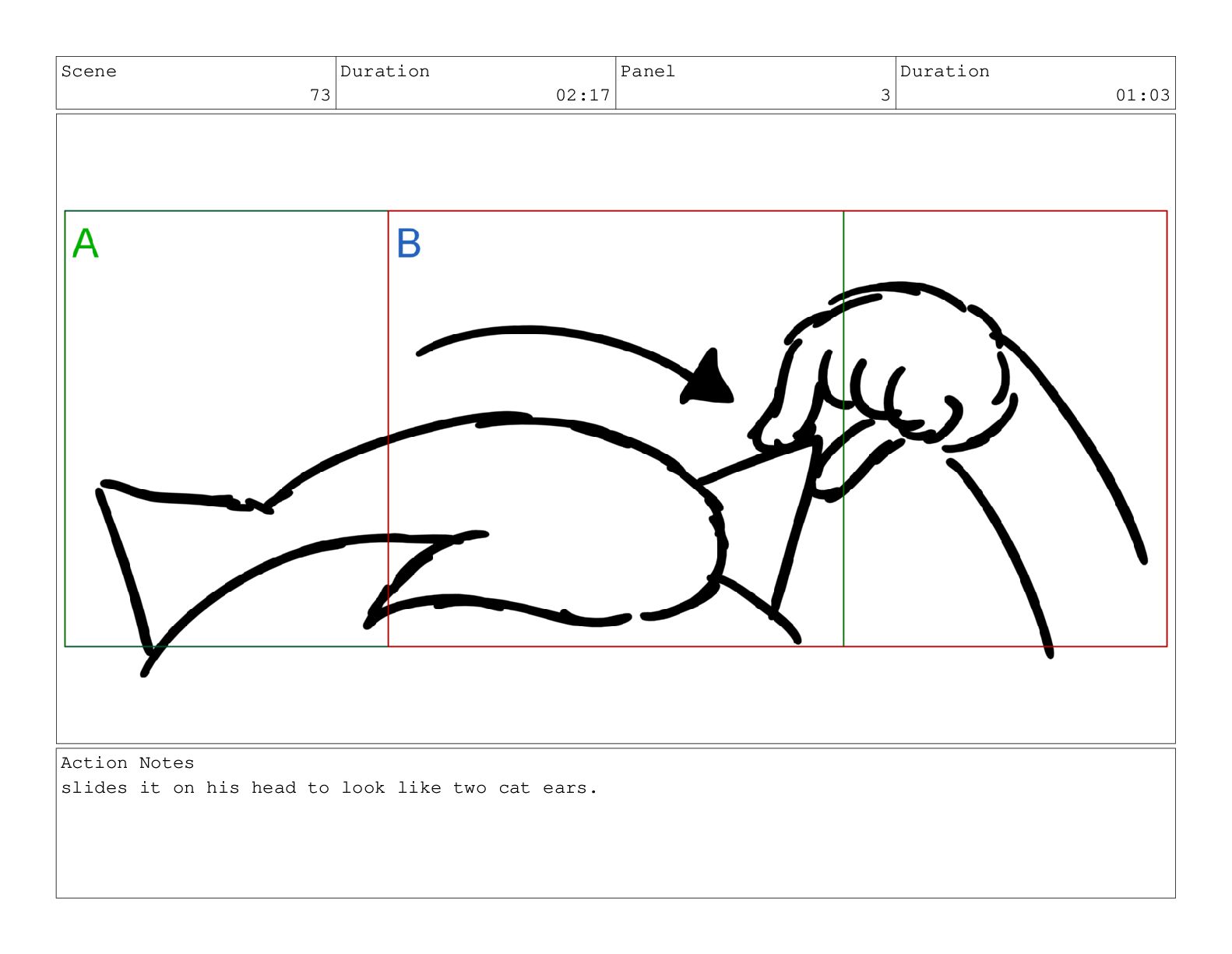 Scene 73 Duration 02:17 Panel 3 Duration 01:03 Action Notes