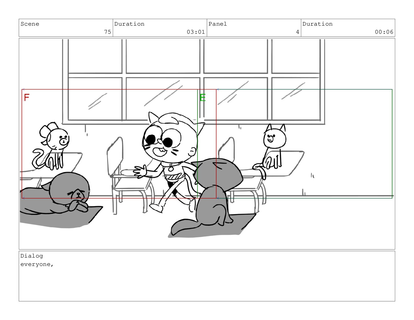 Scene 75 Duration 03:01 Panel 4 Duration 00:06 Dialog everyone,