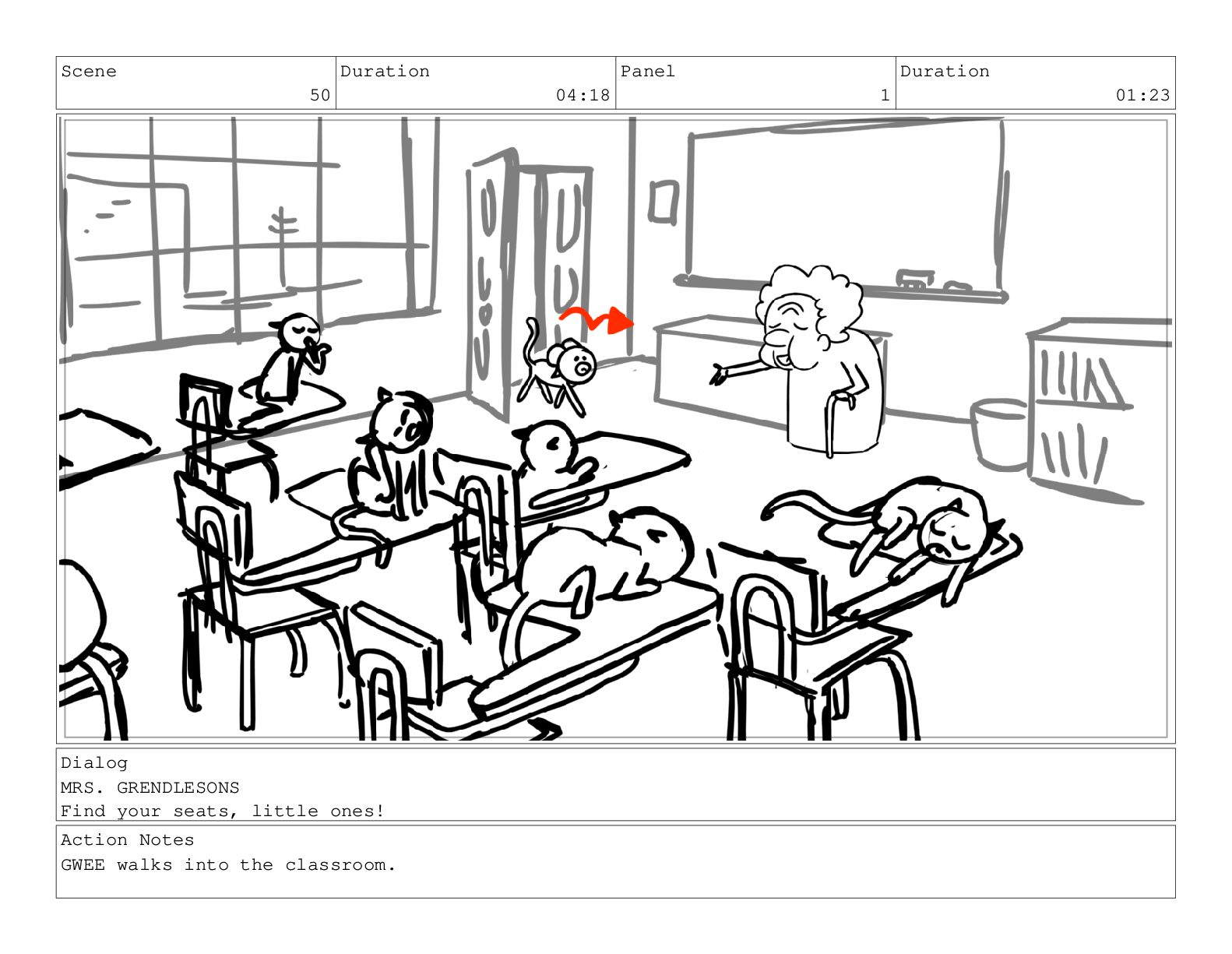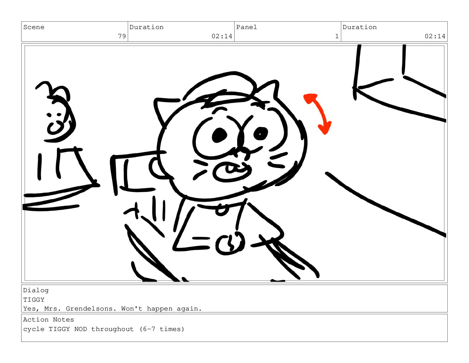 Yes, Mrs. Grendelsons. Won't happen again. Action Notes cycle TIGGY NOD throughout (6-7 times)