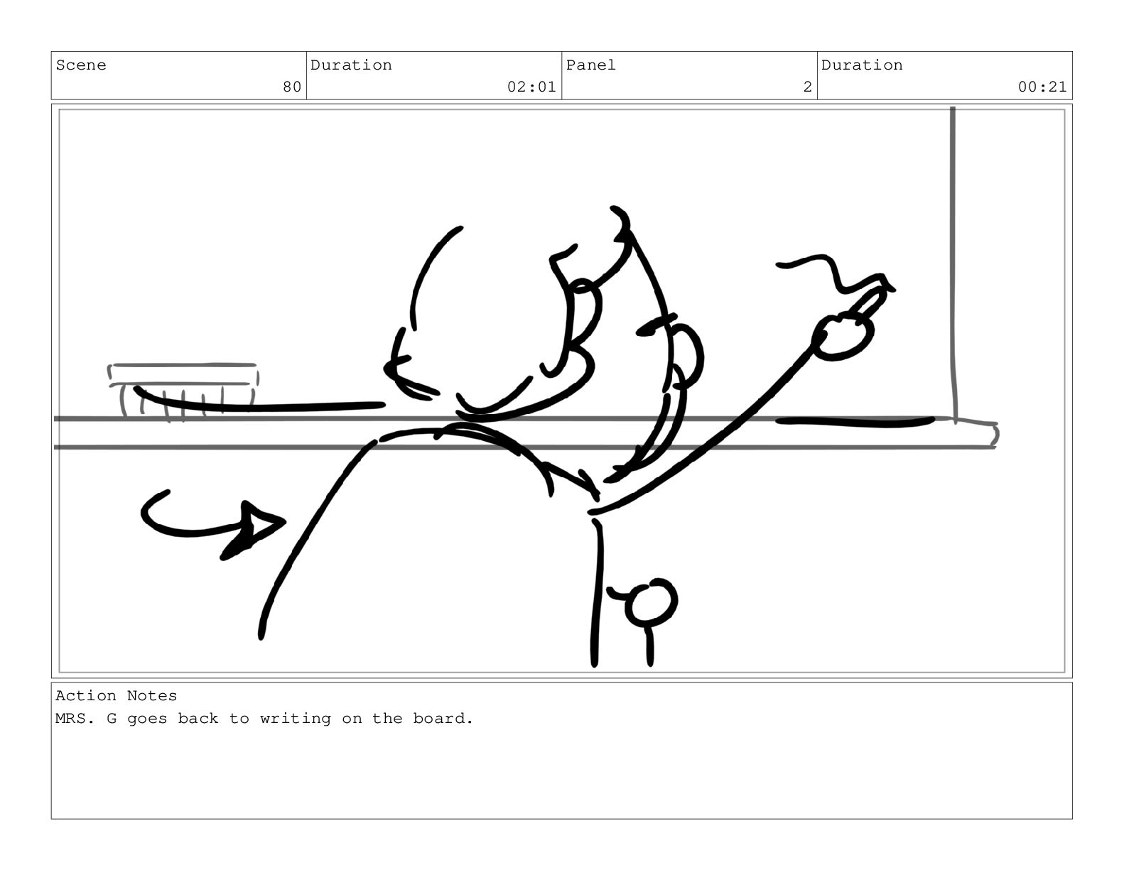 Scene 80 Duration 02:01 Panel 2 Duration 00:21 Action Notes