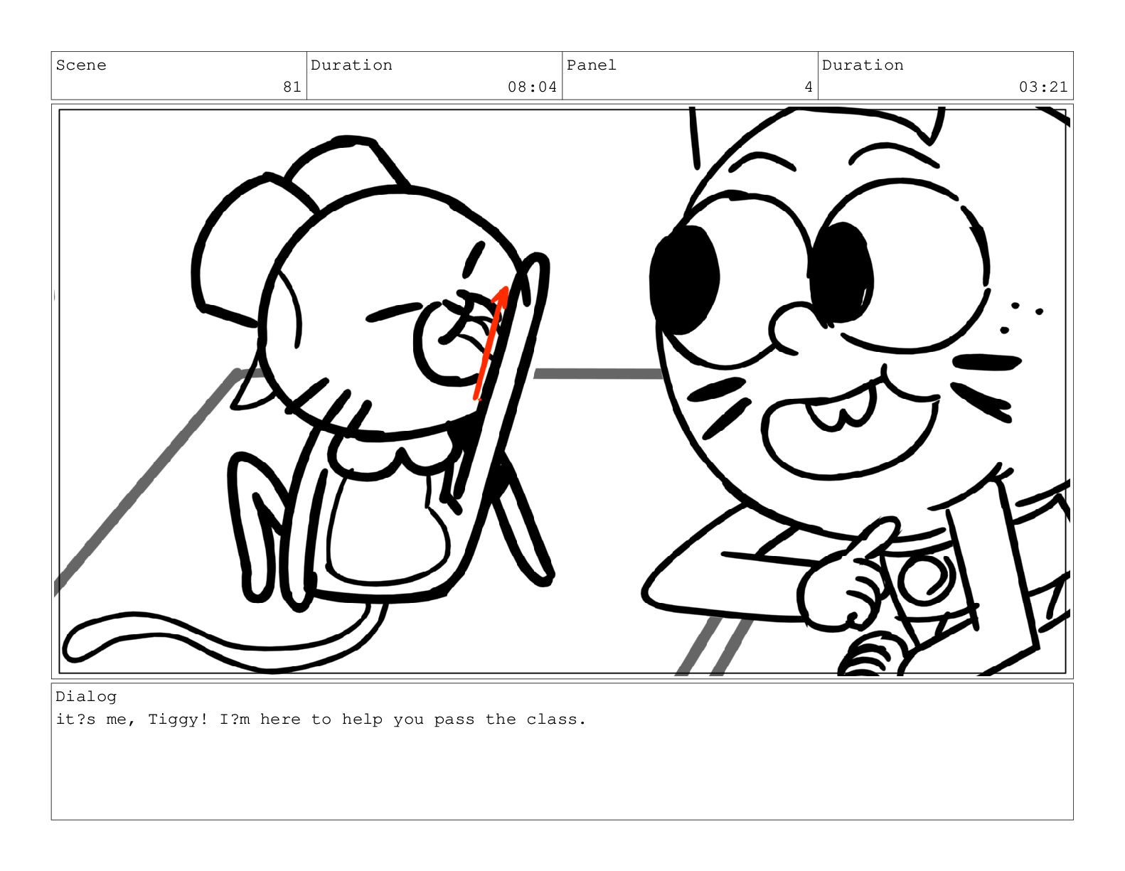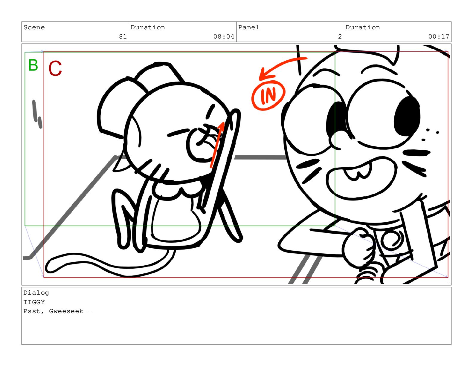 Scene 81 Duration 08:04 Panel 2 Duration 00:17 Dialog TIGGY