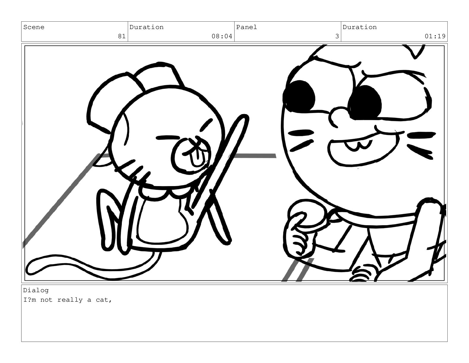 Scene 81 Duration 08:04 Panel 3 Duration 01:19 Dialog I?m
