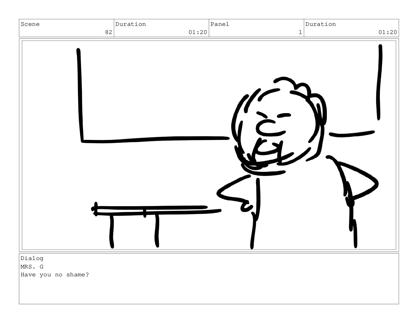 Scene 82 Duration 01:20 Panel 1 Duration 01:20 Dialog MRS.