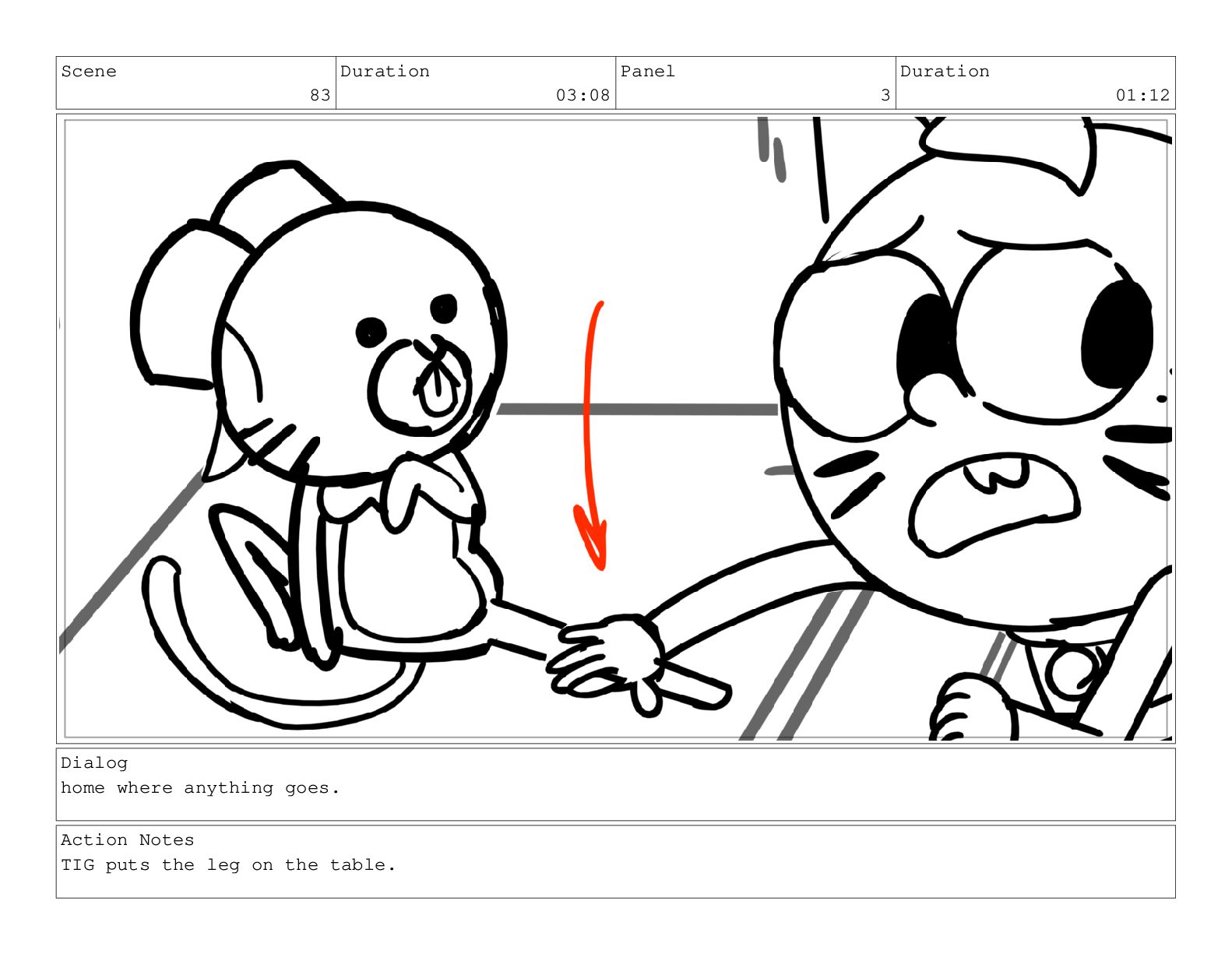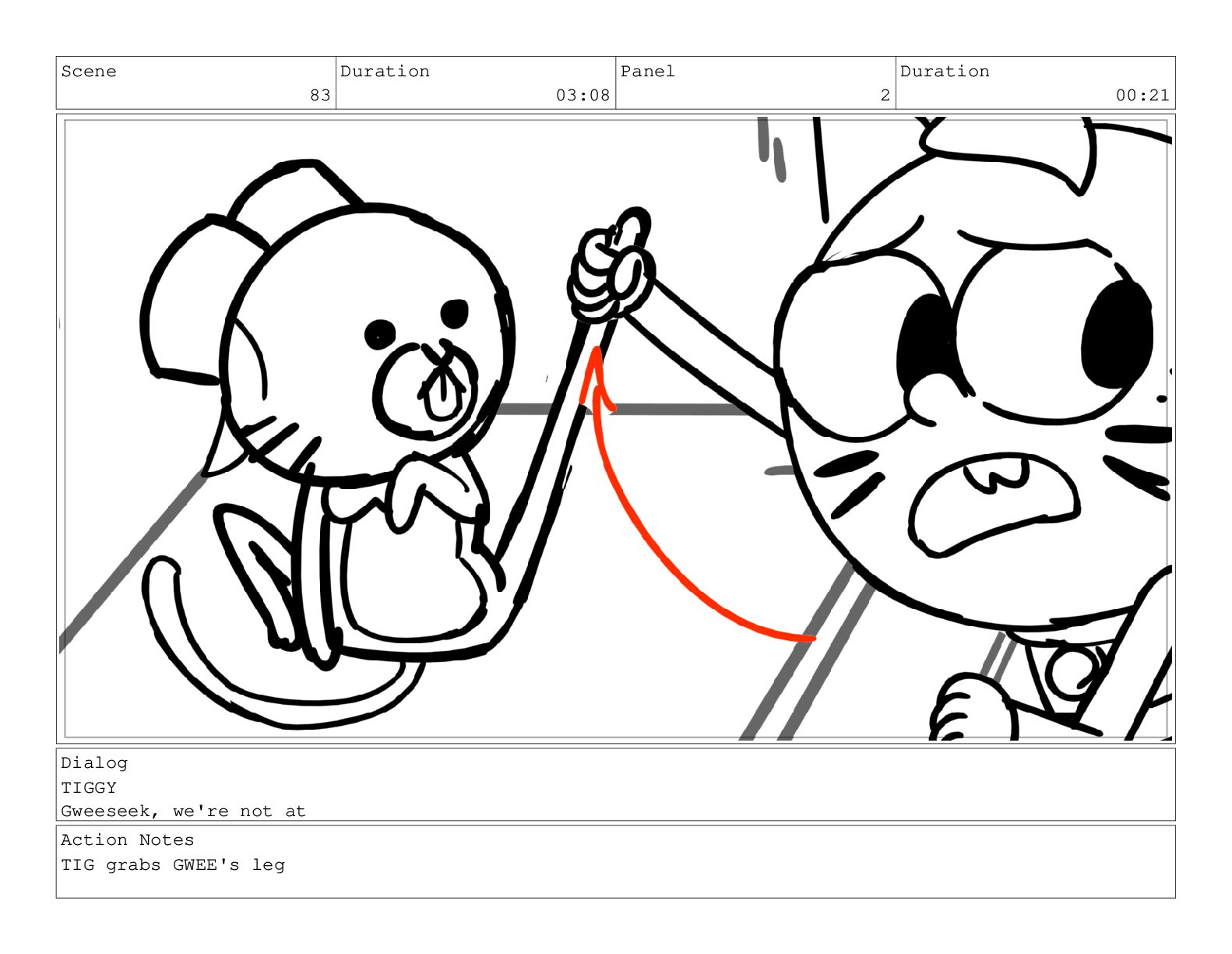 Scene 83 Duration 03:08 Panel 2 Duration 00:21 Dialog TIGGY