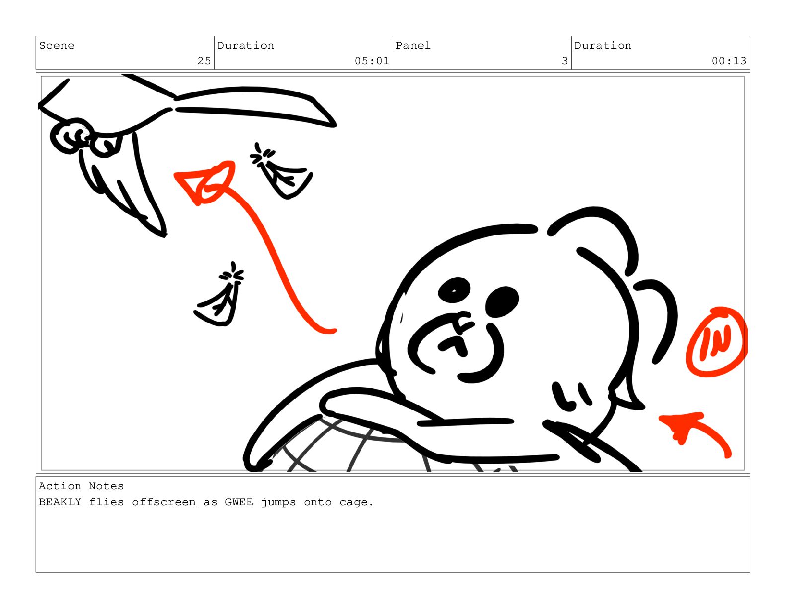 Scene 25 Duration 05:01 Panel 3 Duration 00:13 Action Notes