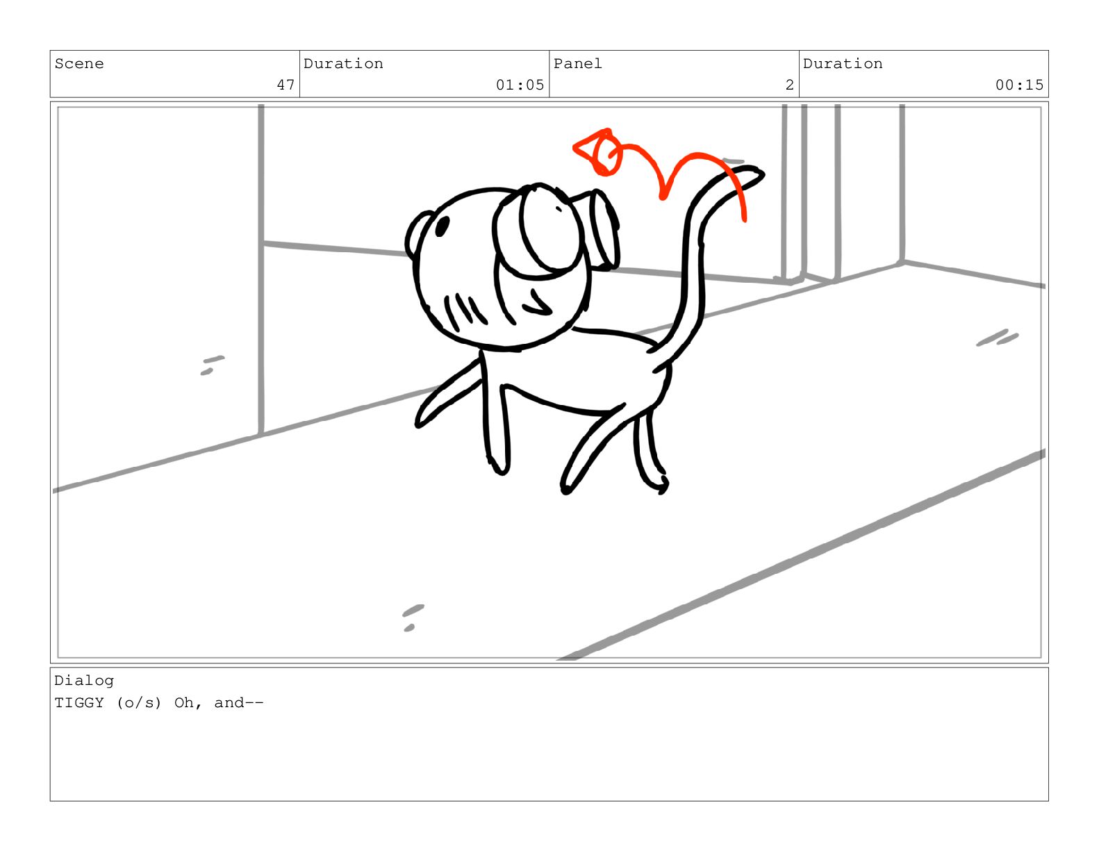 Scene 64 Duration 01:01 Panel 2 Duration 00:12 Dialog TIGGY