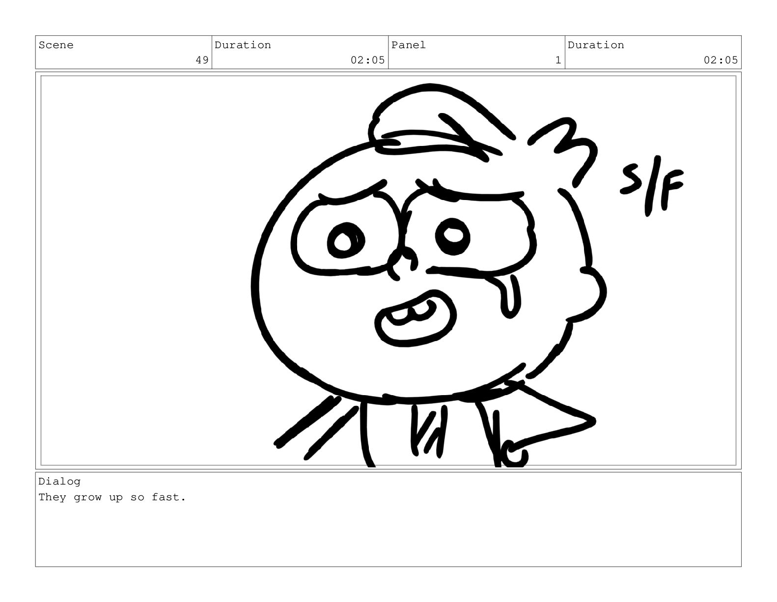 Scene 75 Duration 03:01 Panel 5 Duration 01:07 Dialog just