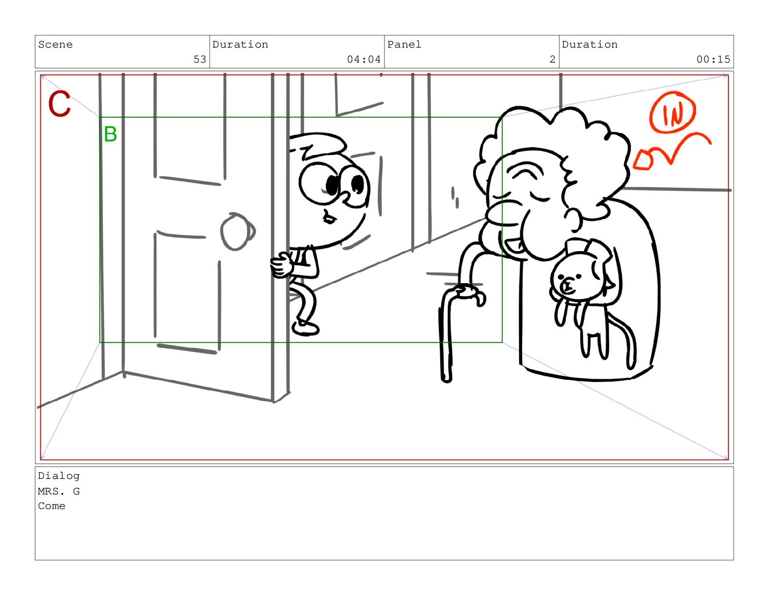 Scene 62 Duration 01:15 Panel 1 Duration 01:15 Action Notes