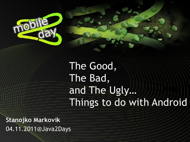 • Currently works at the ARTEMIS R&D department at SudParis Telecom Institute • Worked with android from v1.1 both for app development and custom ROMs • Linux geek • JUGMK member