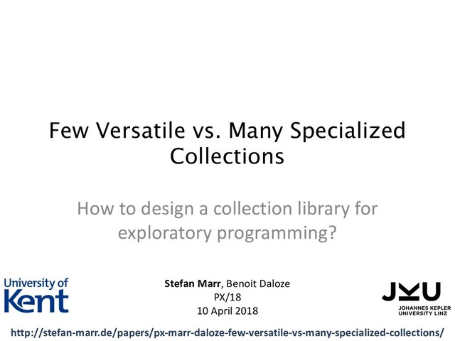 While an integral part of all programming languages, the design of collection libraries is rarely studied. This work briefly reviews the collection libraries of 14 languages to identify possible design dimensions. Some languages have surprisingly few but versatile collections, while others have large libraries with many specialized collections. Based on the identified design dimensions, we argue that a small collection library with only a sequence, a map, and a set type are a suitable choice to facilitate exploratory programming. Such a design minimizes the number of decisions programmers have to make when dealing with collections, and it improves discoverability of collection operations. We further discuss techniques that make their implementation practical from a performance perspective. Based on these arguments, we conclude that languages which aim to support exploratory programming should strive for small and versatile collection libraries.