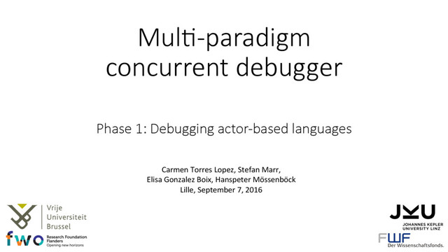 def go(inventory, creditBureau, shipper) { teller := makeAsyncAnd.new(3, object: { def run(answer) { system.println("Got answer: " + answer); } }); inventory<-partInStock("partNo", teller); creditBureau<-checkCredit("name", teller); shipper<-canDeliver("profile", teller); } } def checkoutShoppingBasket(){ buyerP<-go(productP, accountP, shipperP); } REME-D: An Ambient-oriented Debugger 10 go buyerP A breakpoint on a message send... ...halts execuMon of the method invocaMon at receiver actor