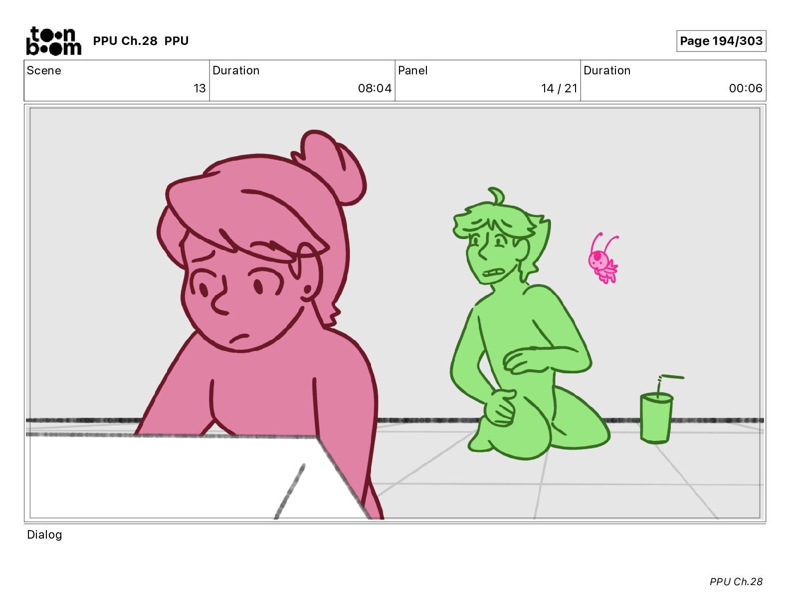 00 13 Dialog But then I left my phone at the bottom of the suitcase. So I had to take everything out again, which made me want to pack different clothes...So I'm packing again. PPU Ch.28 PPU Page 97/303 PPU Ch.28