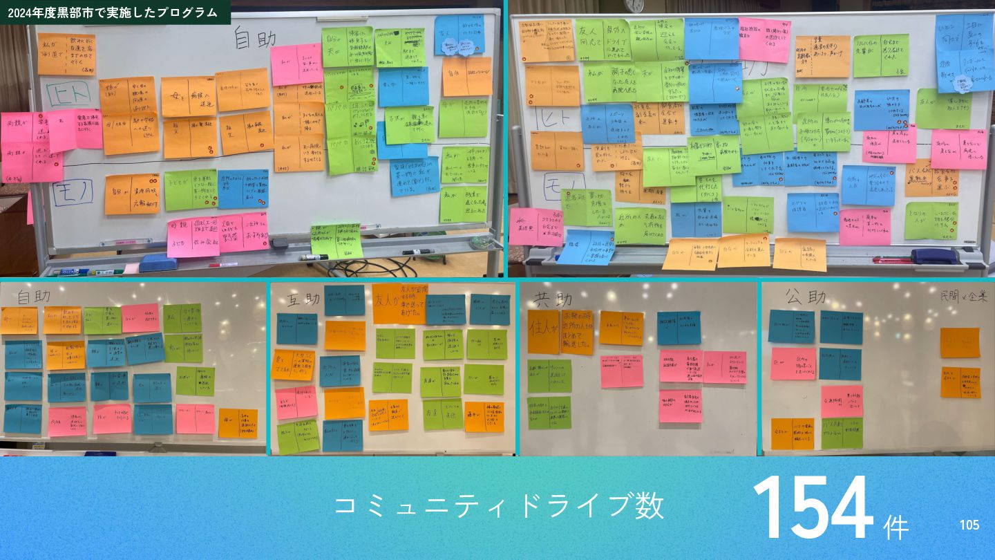 105 コミュニティドライブ数 154 件 2024年度黒部市で実施したプログラム