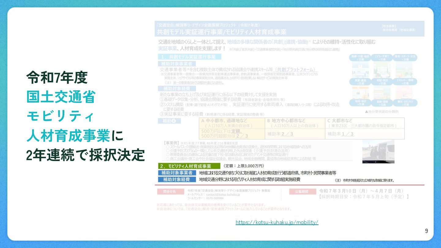 トヨタモビリティ基金の助成を受け、 3年間調査研究と実証実験などを実施。