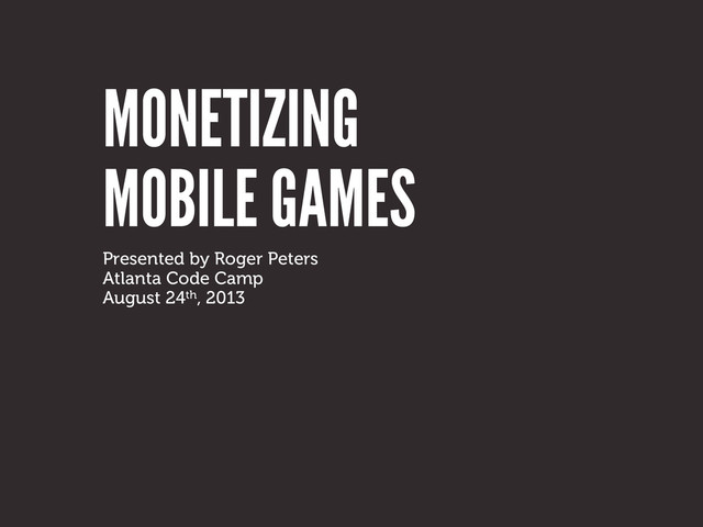 The mobile gaming industry is already a 10 billion dollar a year industry. Learn how independent game creators are generating their revenue, and learn how you can do the same thing. In this session you will learn all about mobile game monetization strategies including advertising options, in app purchases, and large scale user acquisition. Making money in today's mobile marketplace is a reality for those that put in the effort to create great mobile games. Learn how to step up your game and get a piece of the mobile game pie.